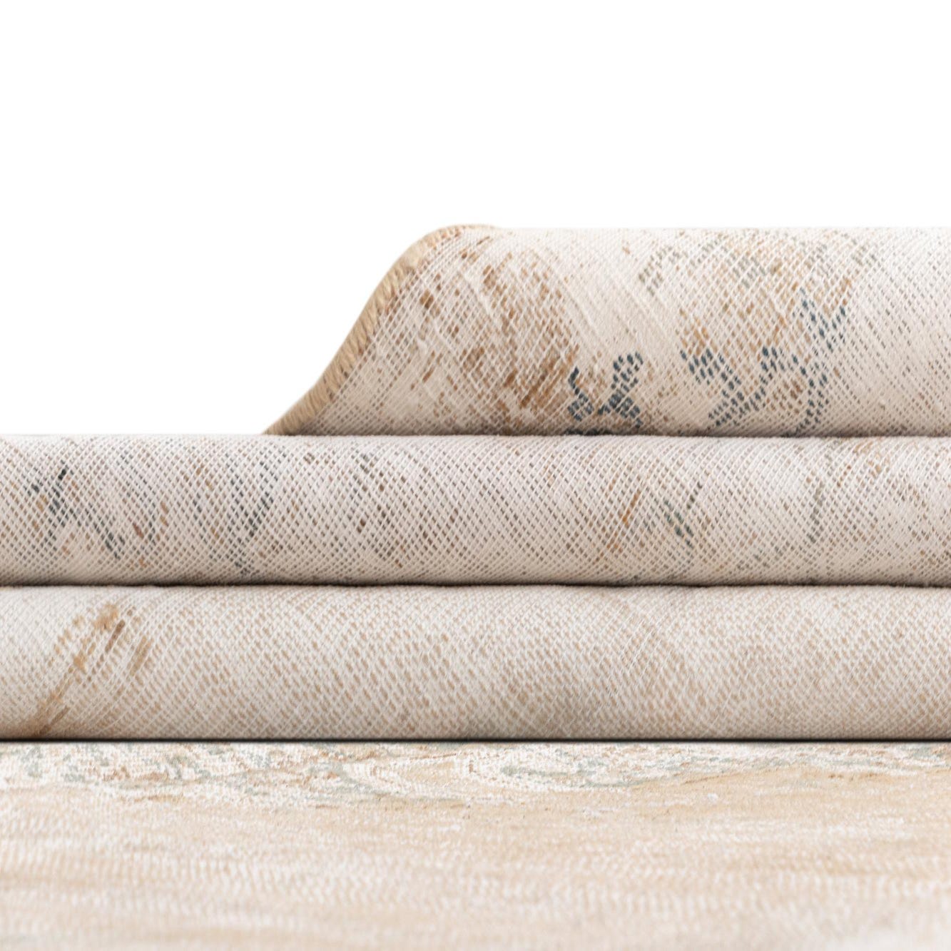 This rug works well in traditional or transitional interiors where a muted, vintage-inspired anchor is needed—place it beneath a seating group in a formal living room or under a dining table to soften a hardwood floor. It also pairs nicely with warm wood tones, linen upholstery, and soft metallic accents for a layered, collected look; alternatively, use it to introduce subtle color and pattern into a calm, contemporary space.