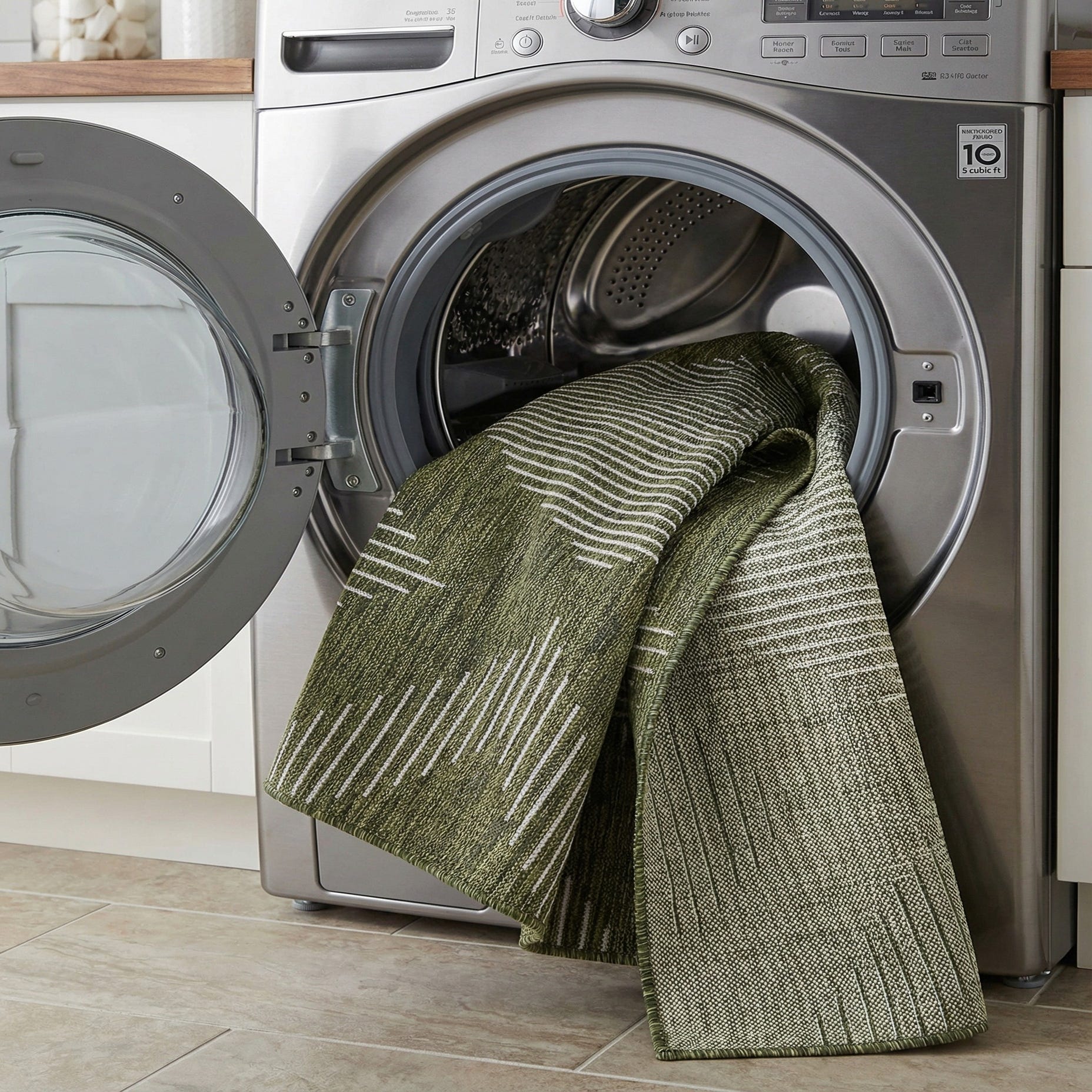 This runner works well in hallways, entryways, or along a kitchen island, and it’s equally at home on a covered porch or mudroom where a resilient surface is needed. Pair it with warm wood flooring, matte black or brass accents, and simple, streamlined furniture for a contemporary look; it also complements modern farmhouse and casual coastal interiors by adding structured graphic interest without overpowering the room.