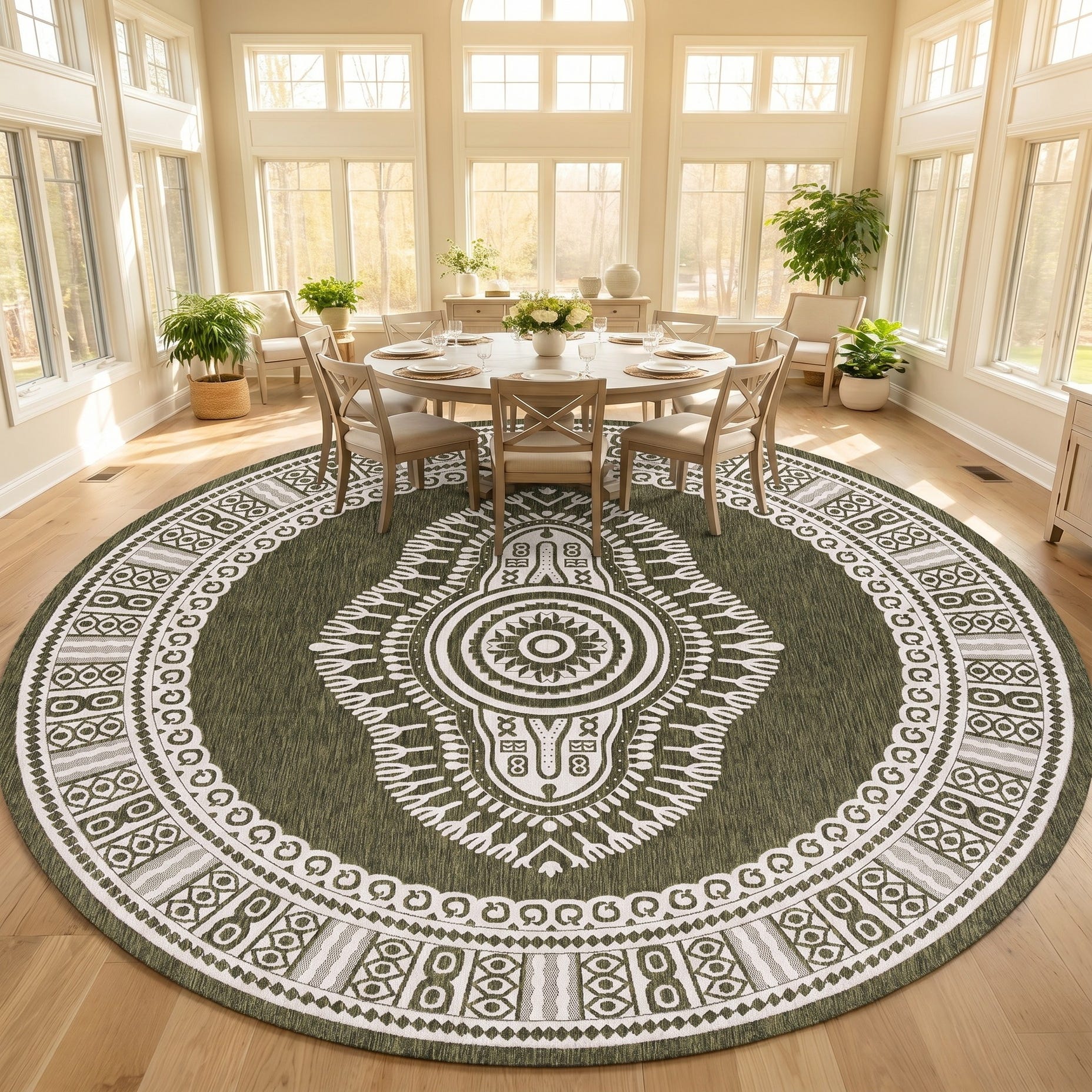 13' x 13' Easy-Clean Traditional Indoor / Outdoor Round Rug