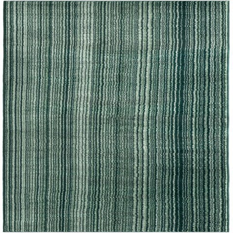 A narrow, linear pattern runs the length of this runner in layered tones of green, light green and olive set against a green background. The design uses closely spaced, tonal stripes that create gentle vertical movement and a slightly weathered look—subtle variation in color gives the surface depth without competing with other room elements. The machine-made polypropylene construction produces a low-to-medium profile with a smooth, slightly velvety feel; the fibers sit close together so the texture reads both soft and structured underfoot.