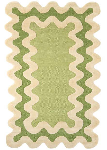 Primary color is Green. Colors in this rug include: Green, Ivory.