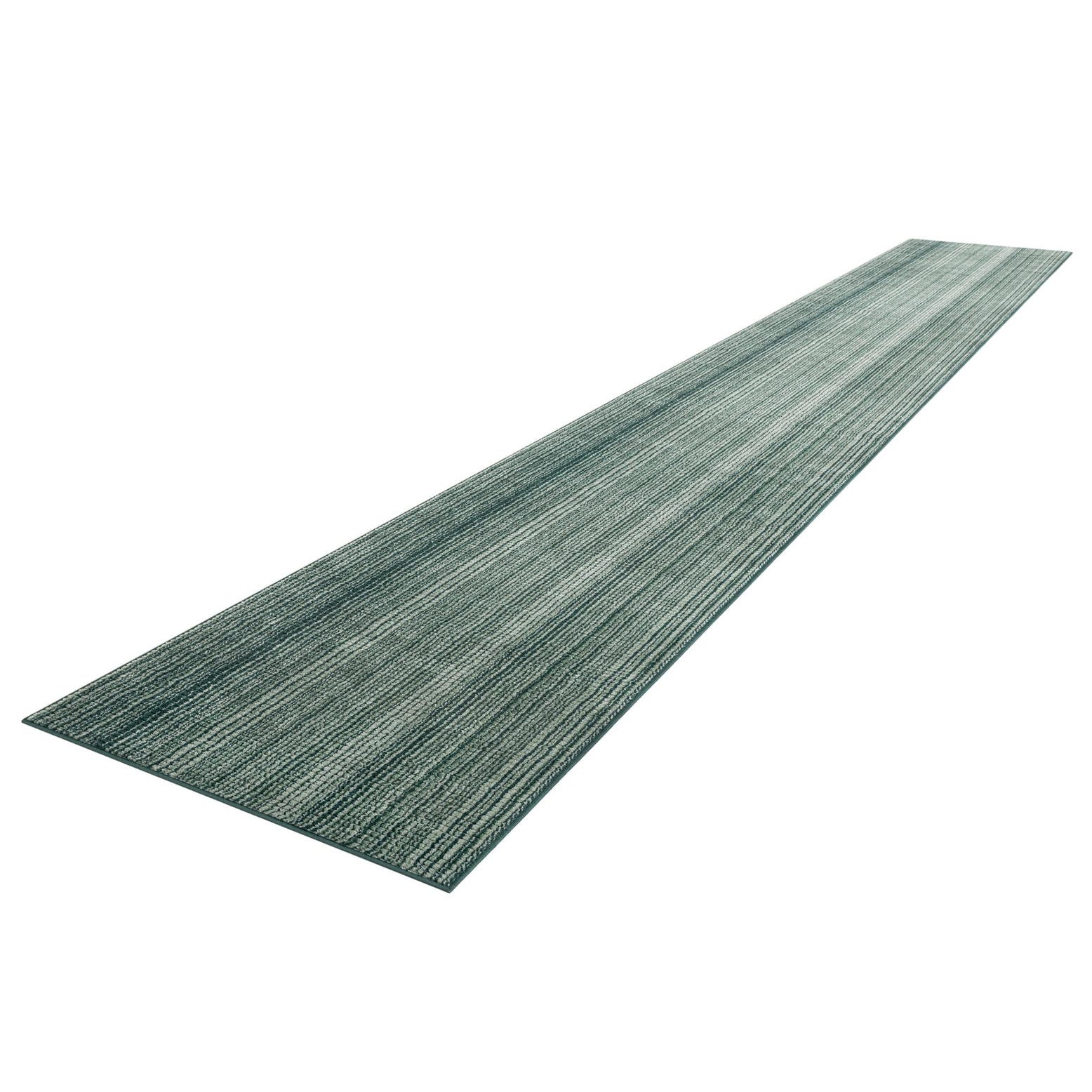 A long, rectangular 20 ft runner rug in varying shades of green, featuring a textured striped pattern, ideal for a hallway.