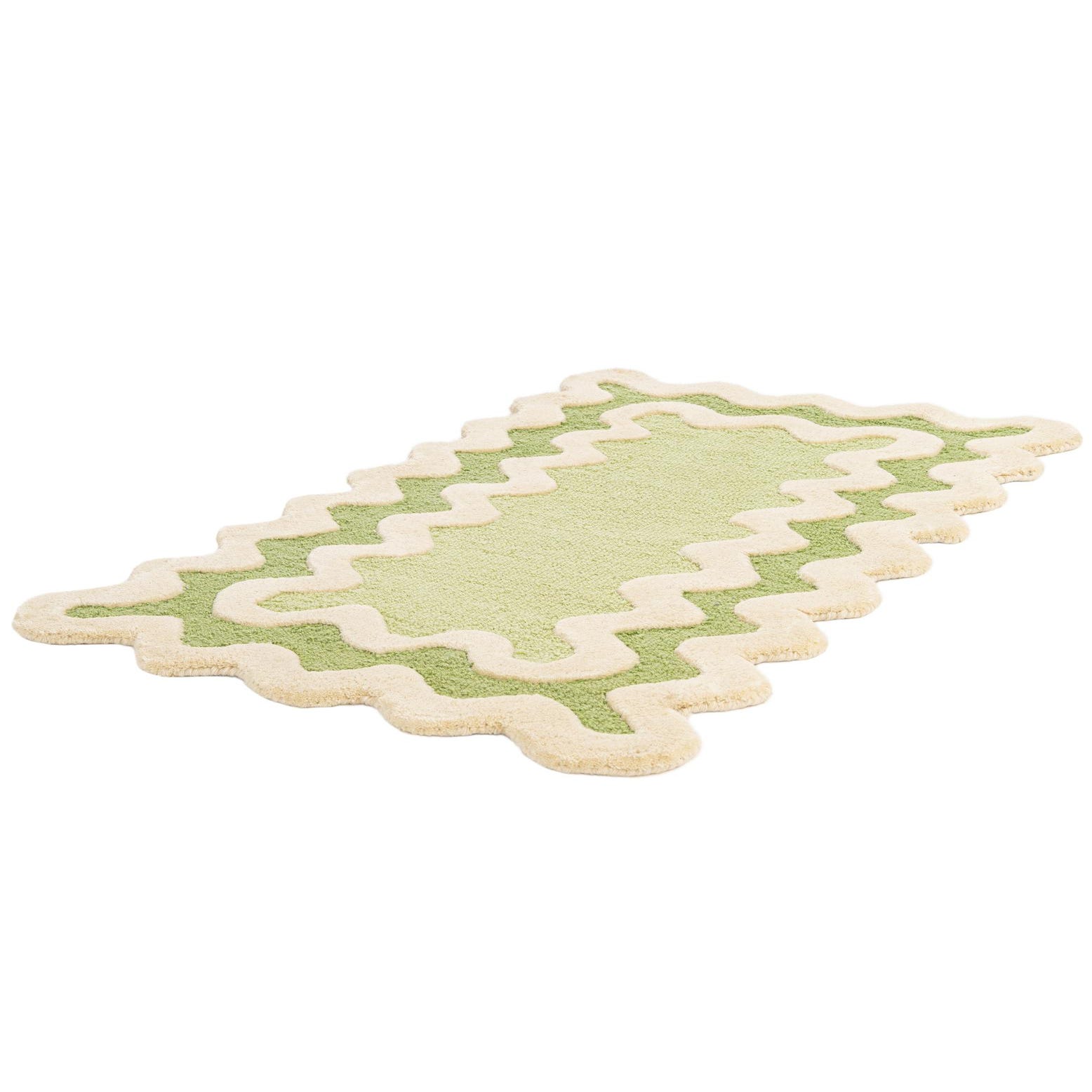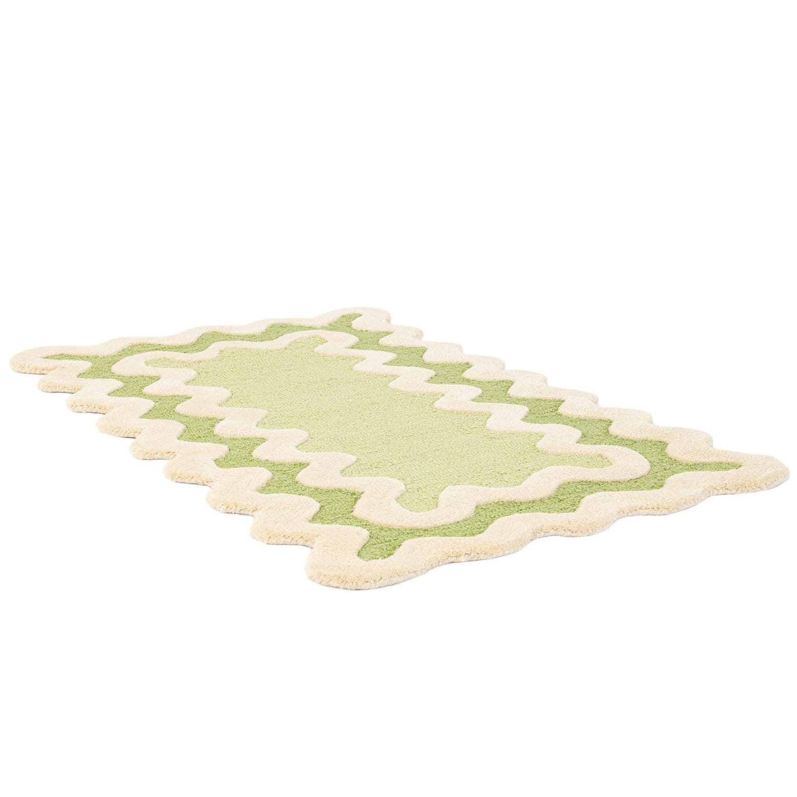 Primary color is Green. Colors in this rug include: Green, Ivory.