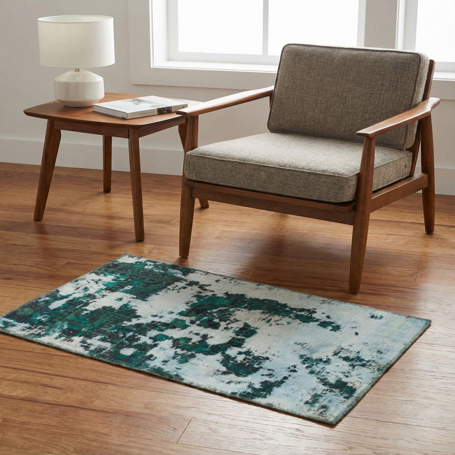 Primary color is Green. Colors in this rug include: Green, Black, Light Green, Beige.