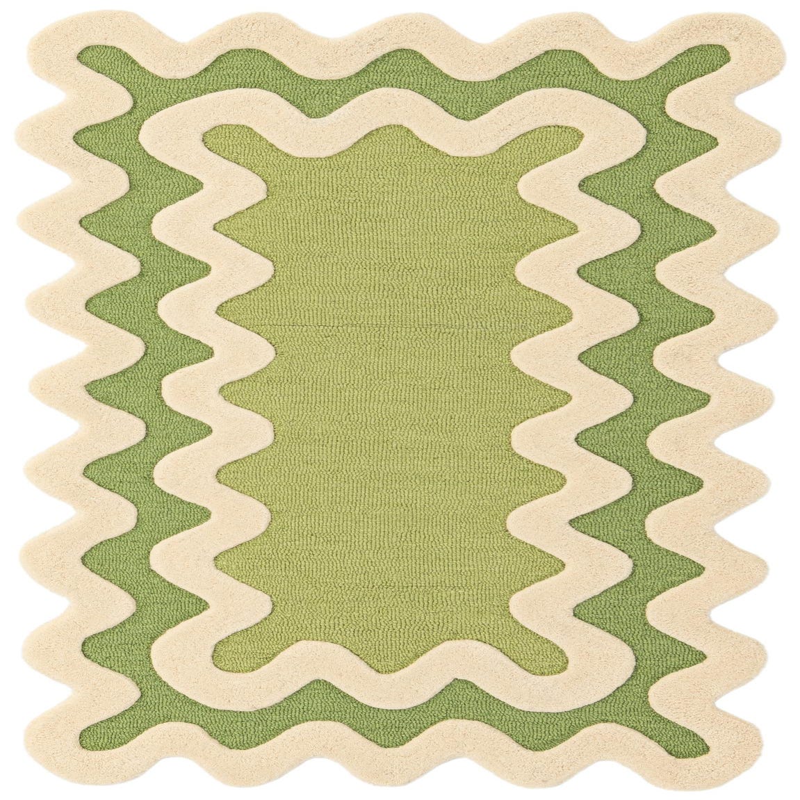 Primary color is Green. Colors in this rug include: Green, Ivory.