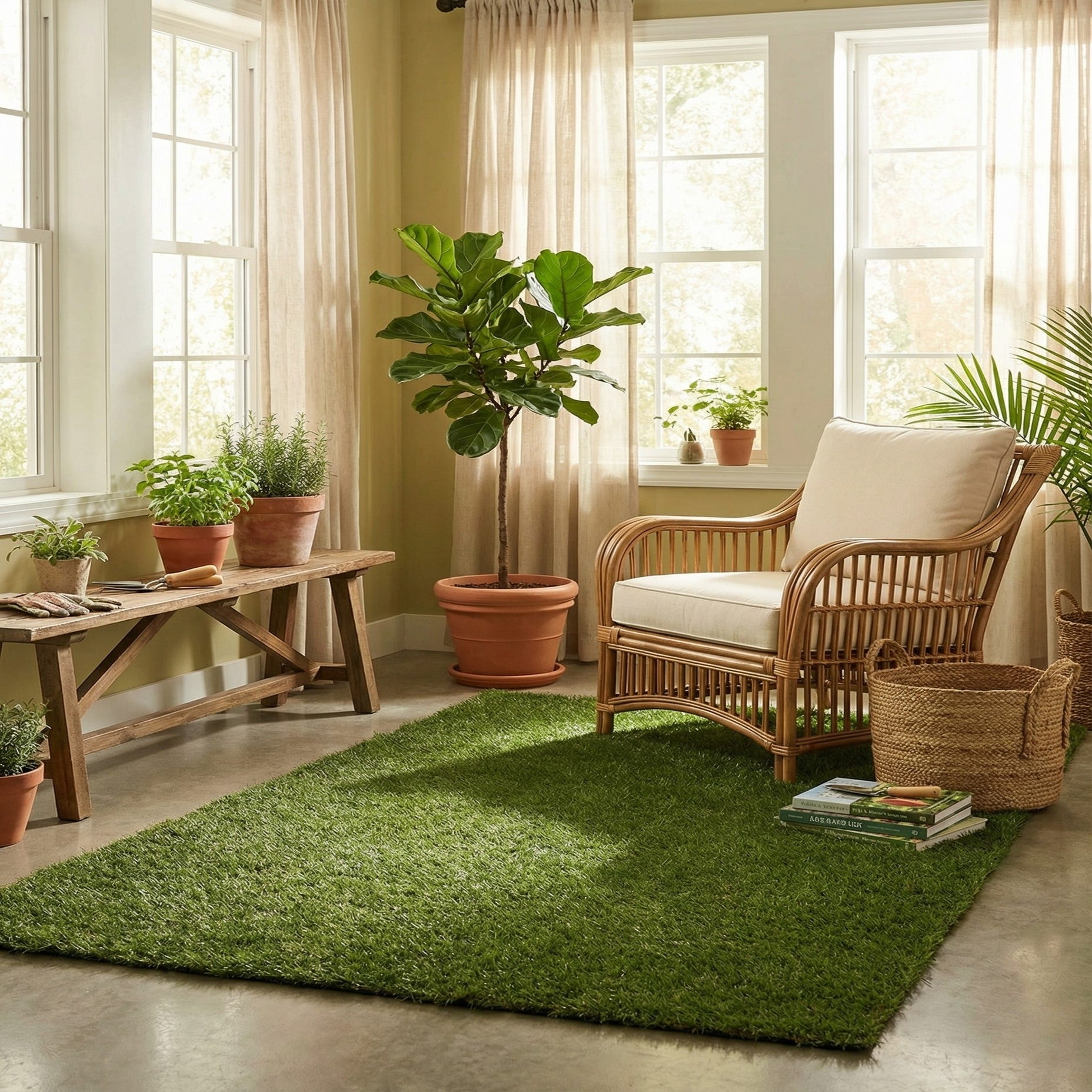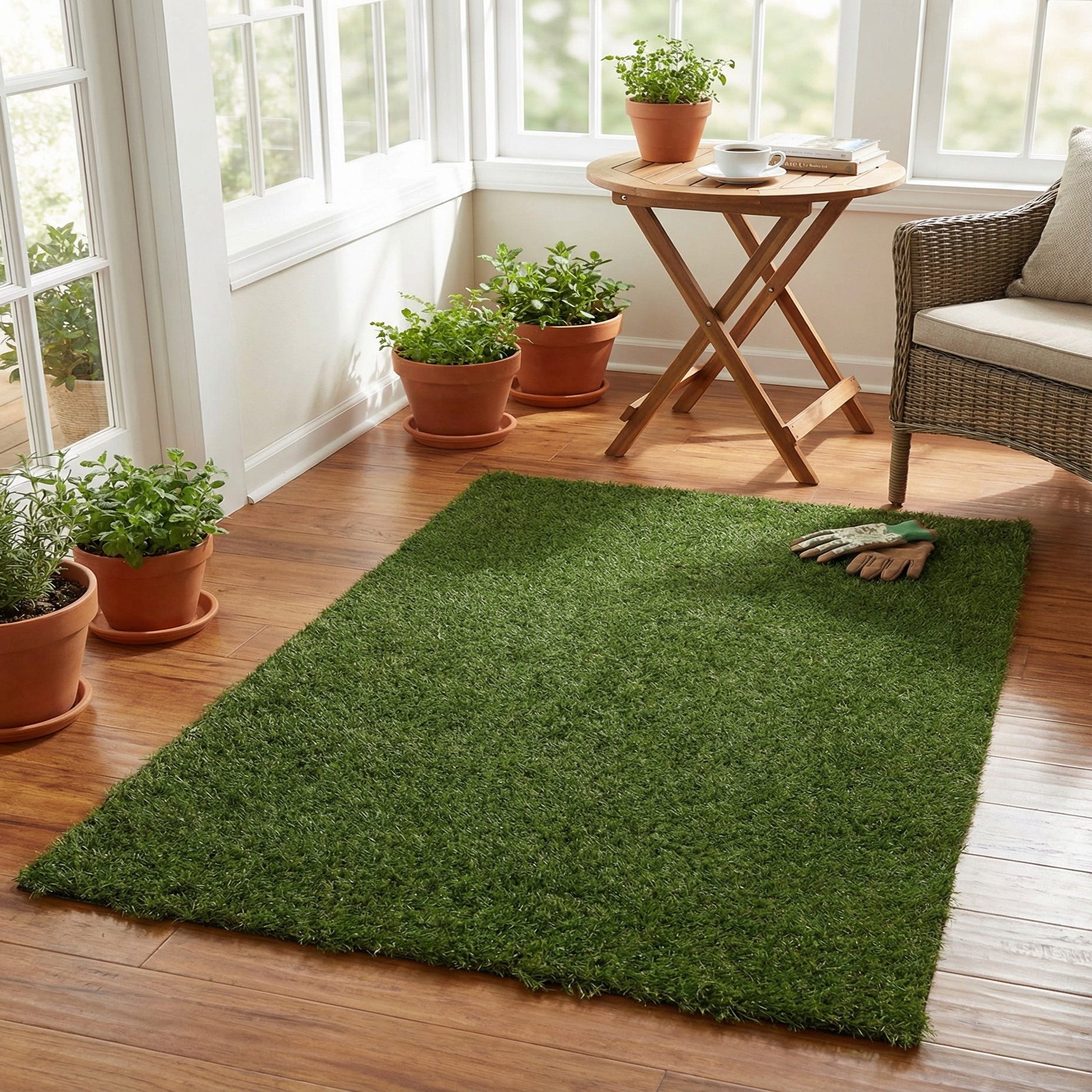 3' 3 x 5' 3 Washable Grass Indoor / Outdoor Rug