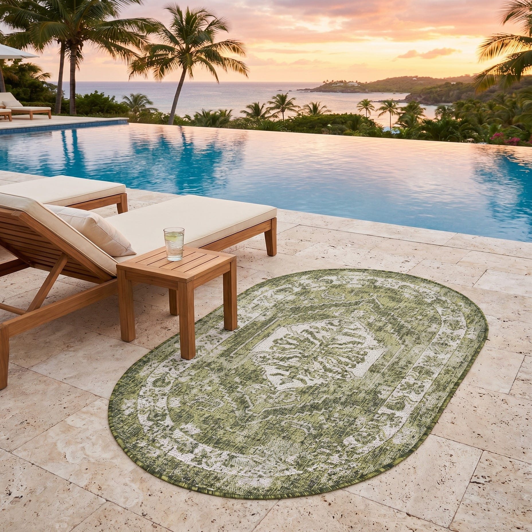 3' x 5' 3 Easy-Clean Traditional Indoor / Outdoor Oval Rug