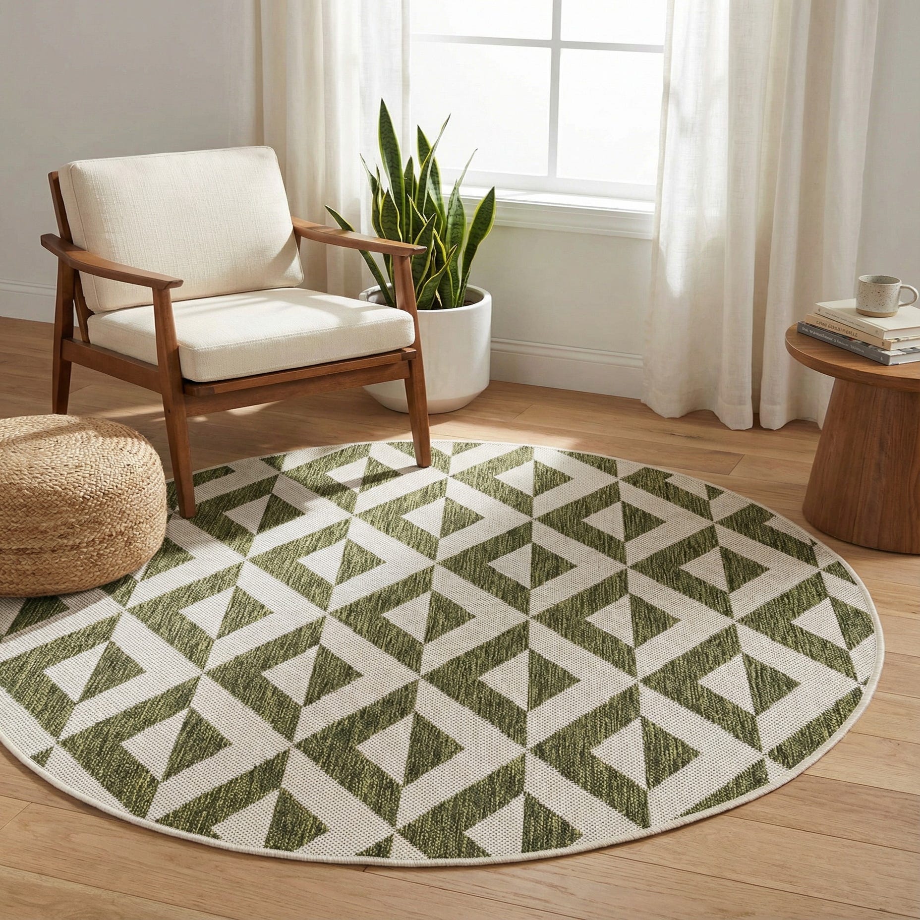 Designed for versatile use, this rug works equally well on a covered patio, sunroom, or entry where a durable, decorative surface is needed. Place it under a bistro set or small outdoor dining table to define a seating area, or layer it beneath woven sofas and natural-wood accents to introduce pattern without overpowering the room. It pairs naturally with rattan and teak furniture, crisp white linens, and plenty of plants for a relaxed, contemporary look.