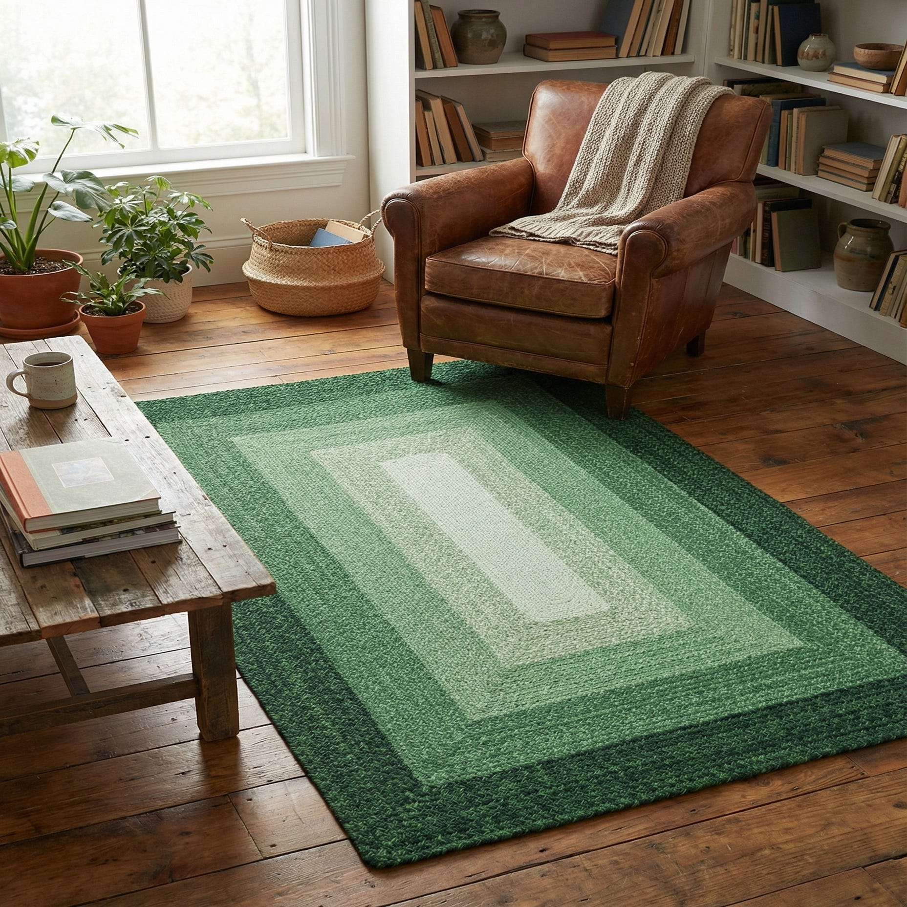 Primary color is Green. Colors in this rug include: Green, Light Green.