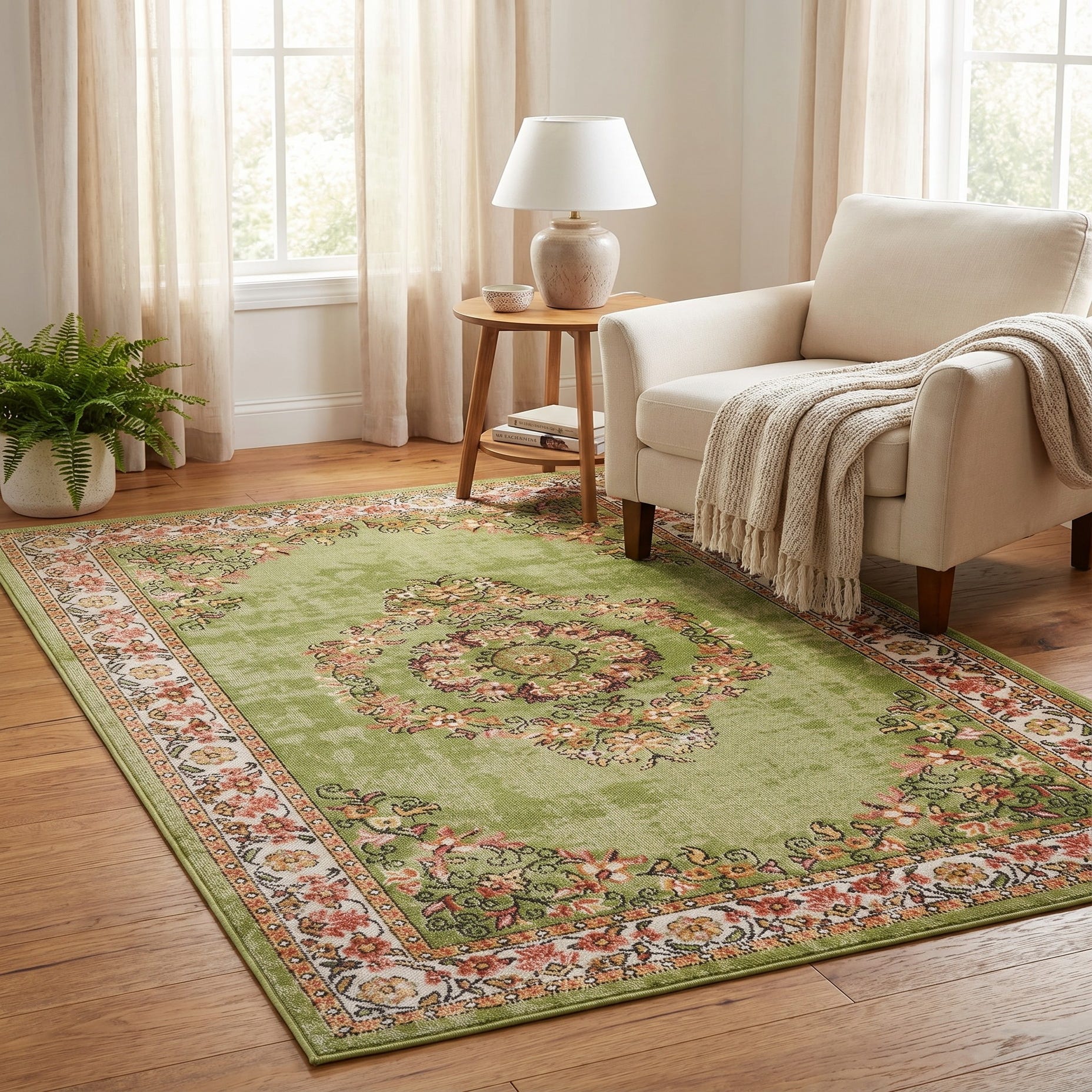 This rug has become the design inspiration for my whole house! I was tired of all the grey and tan and this was the perfect solution. The rug lays nice and flat in a high traffic area no tripping on bent up corners. It was folded when it came but the creases have all flattened out nicely with no extra effort on my part. I get a lot of compliments on it.