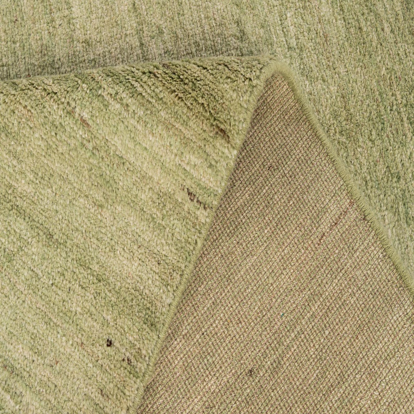 A 4x6 rectangular green wool area rug with a subtle tribal texture, suitable for various indoor rooms.
