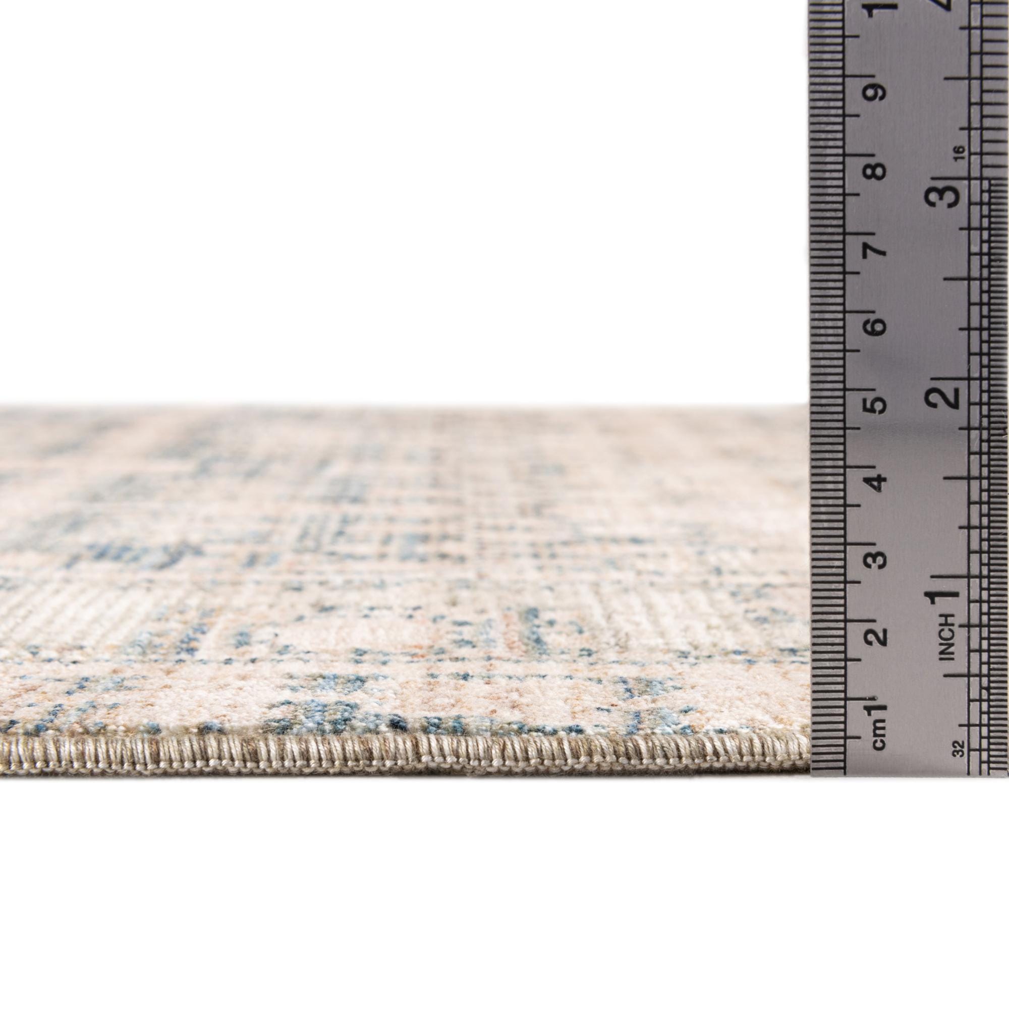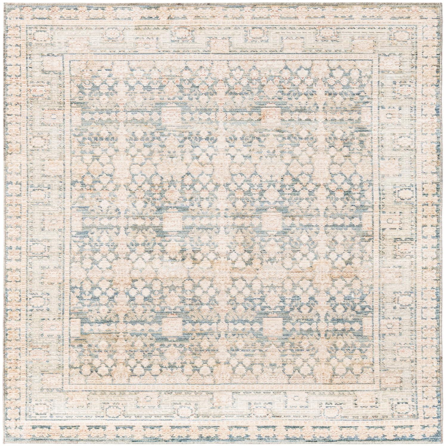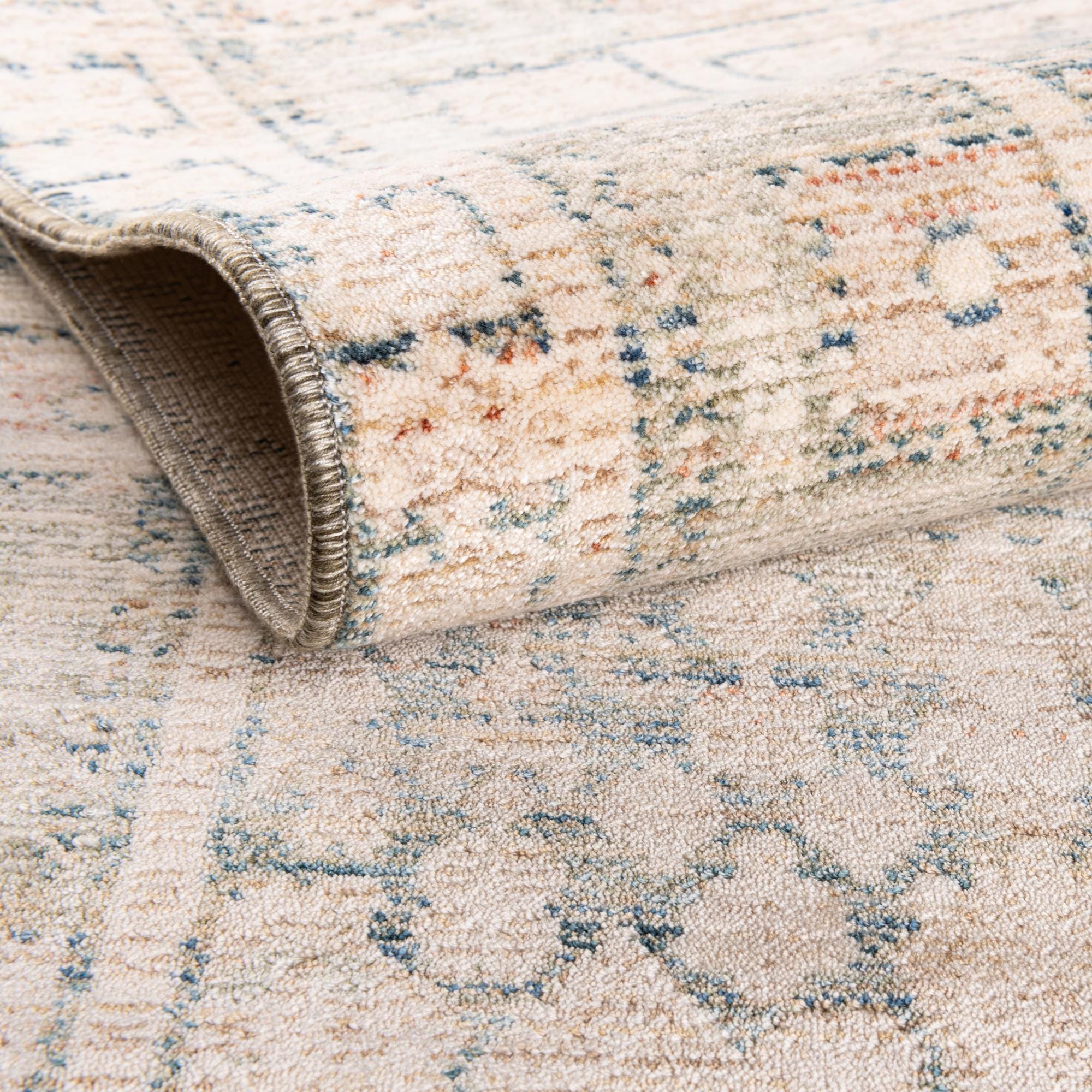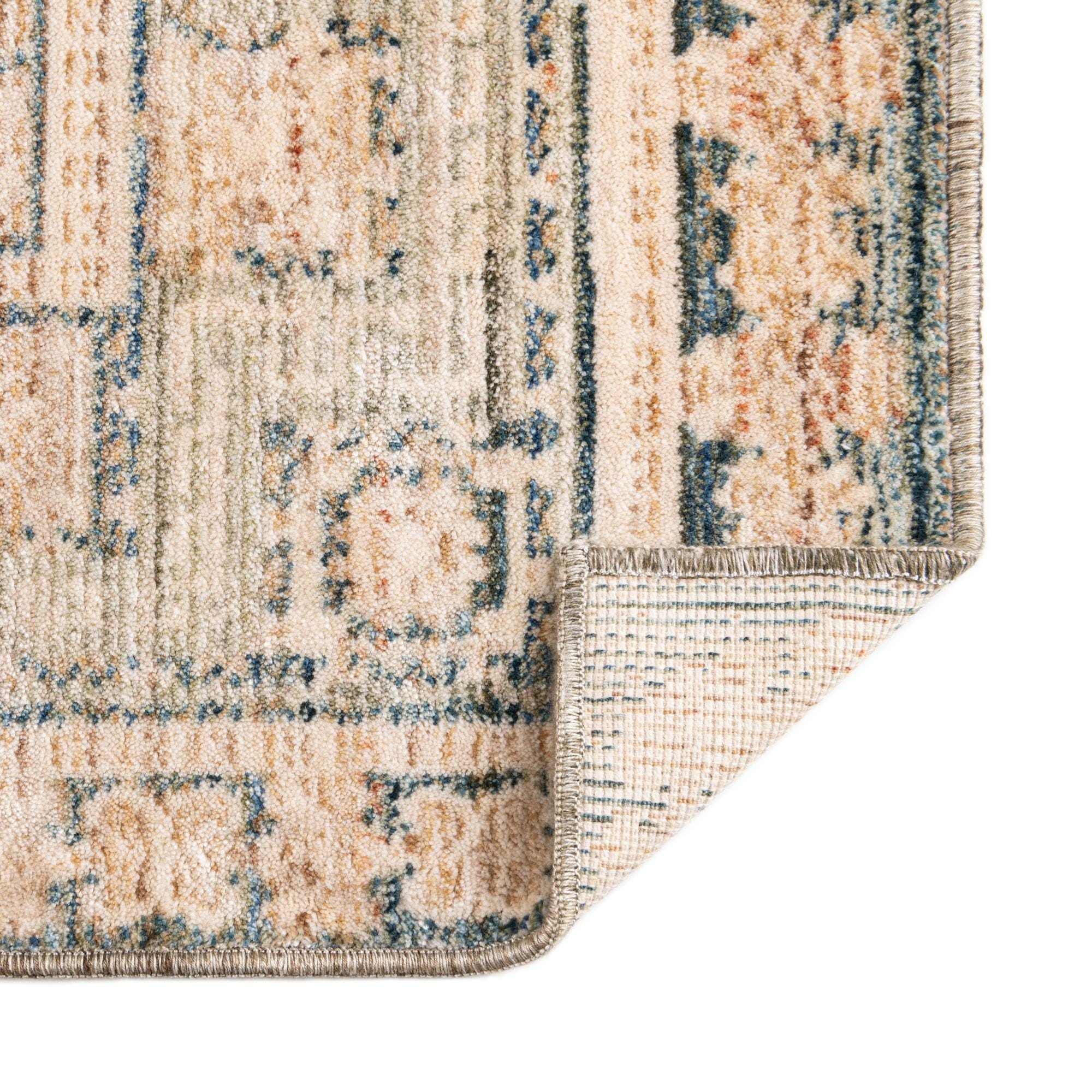 Primary color is Green. Colors in this rug include: Green, Beige, Ivory, Gray, Light Blue, Light Brown, Light Green, Peach.
