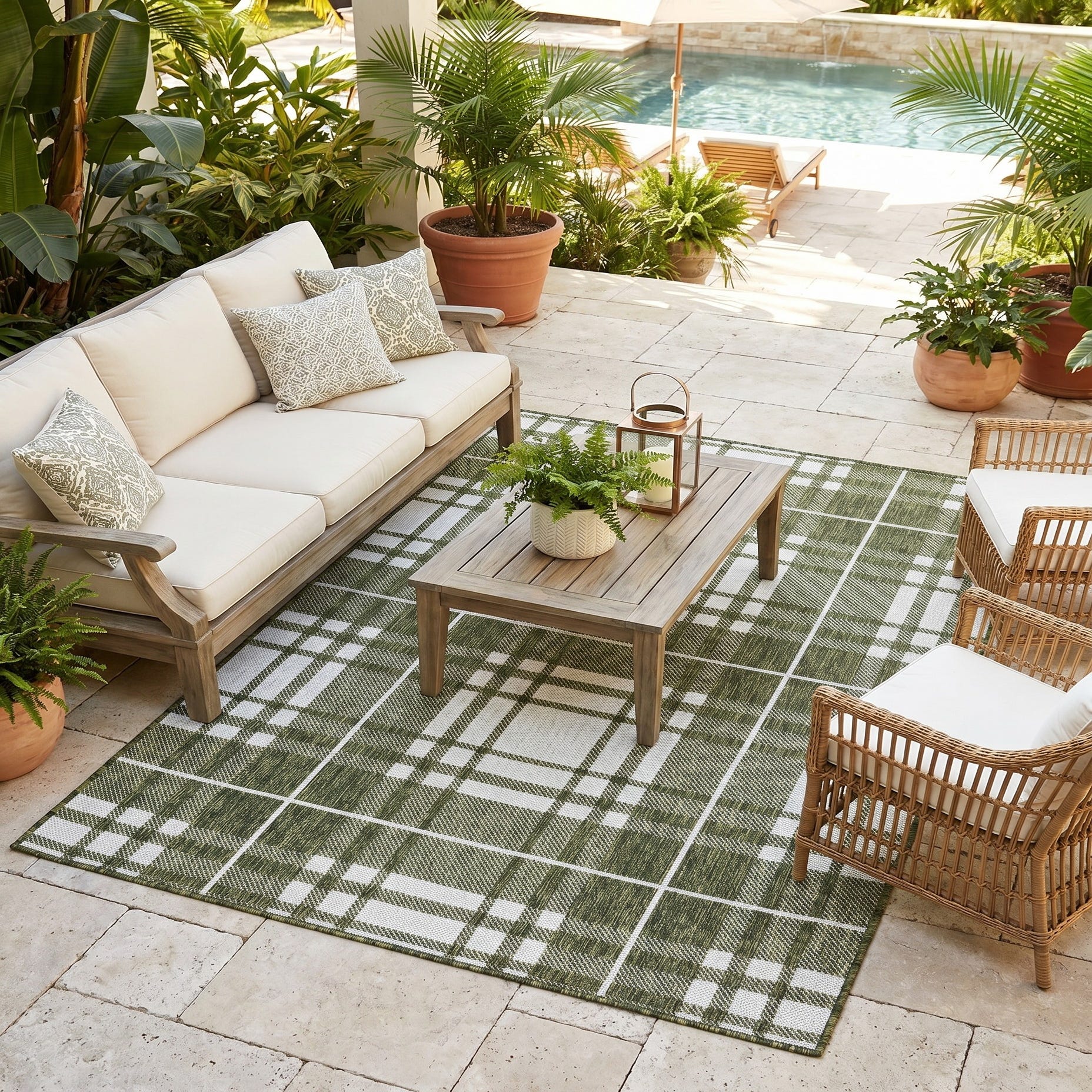 4' x 6' Easy-Clean Checkered Indoor / Outdoor Rug