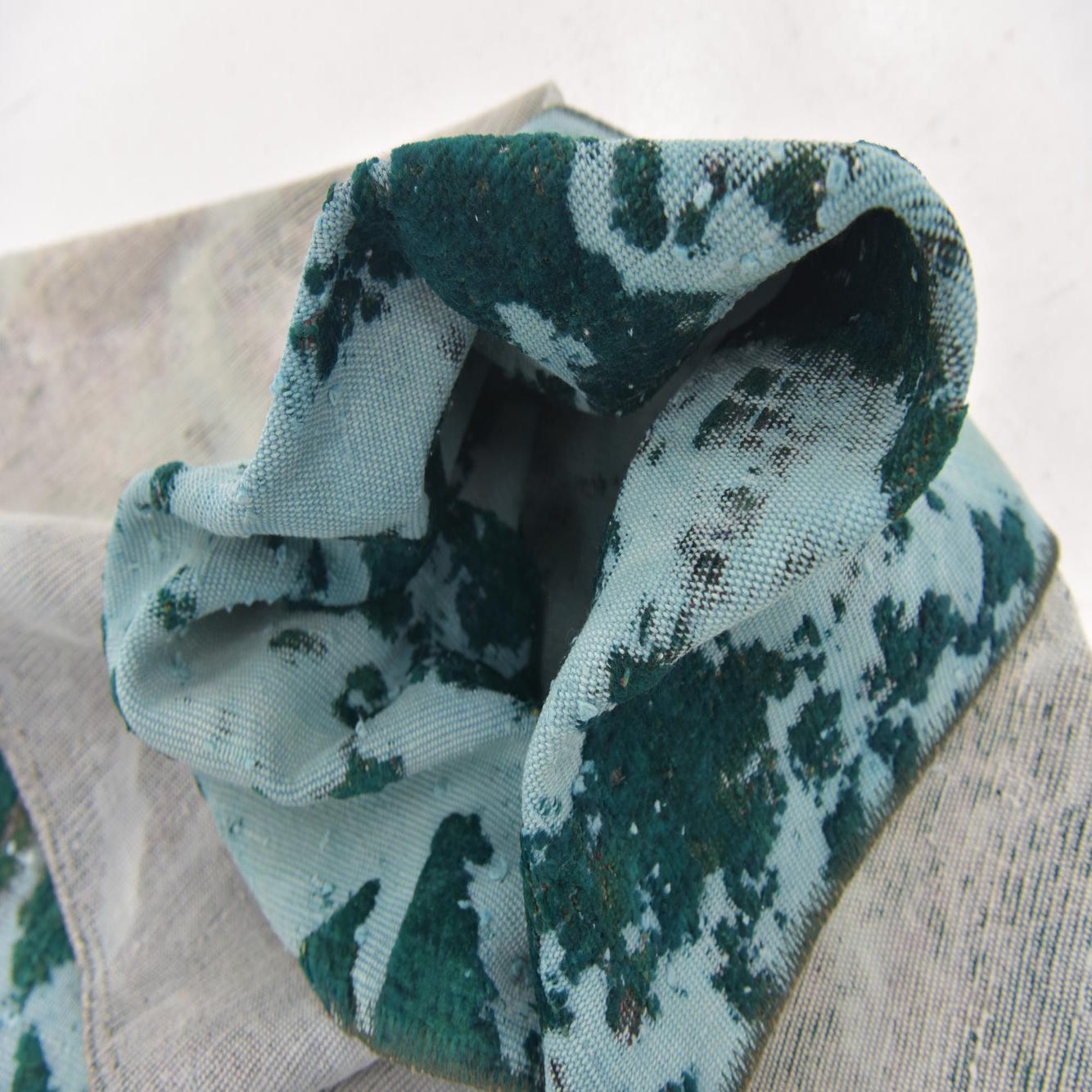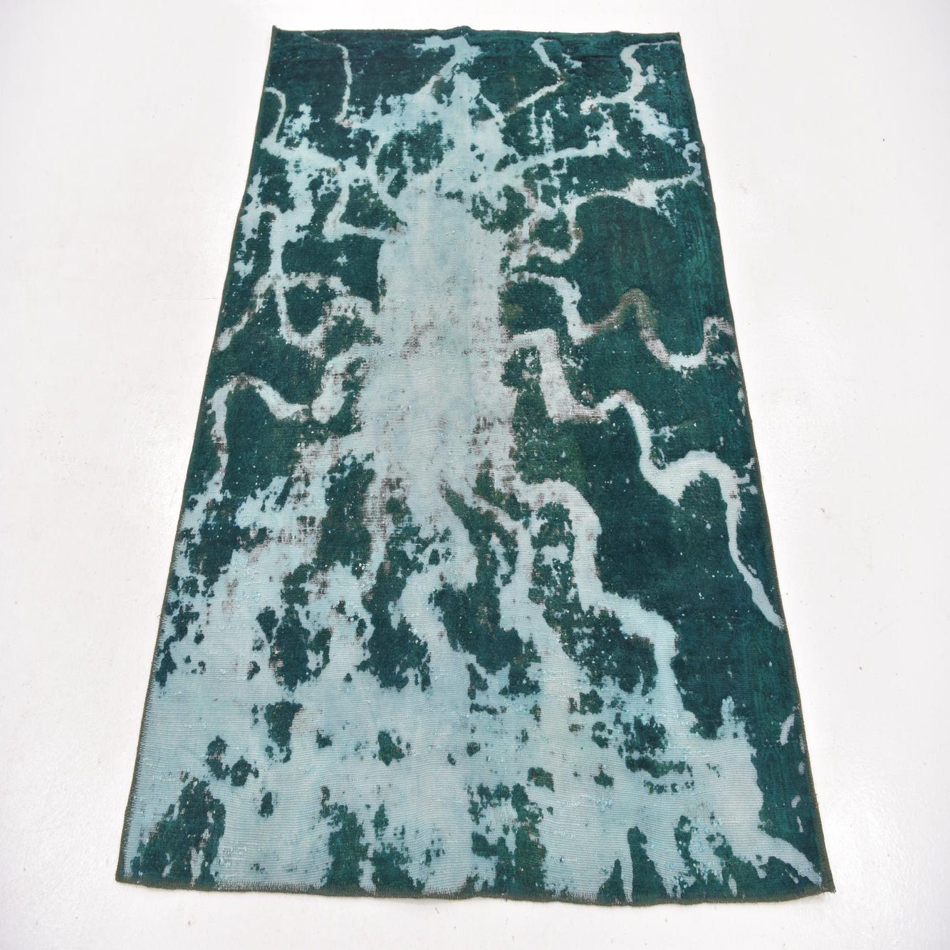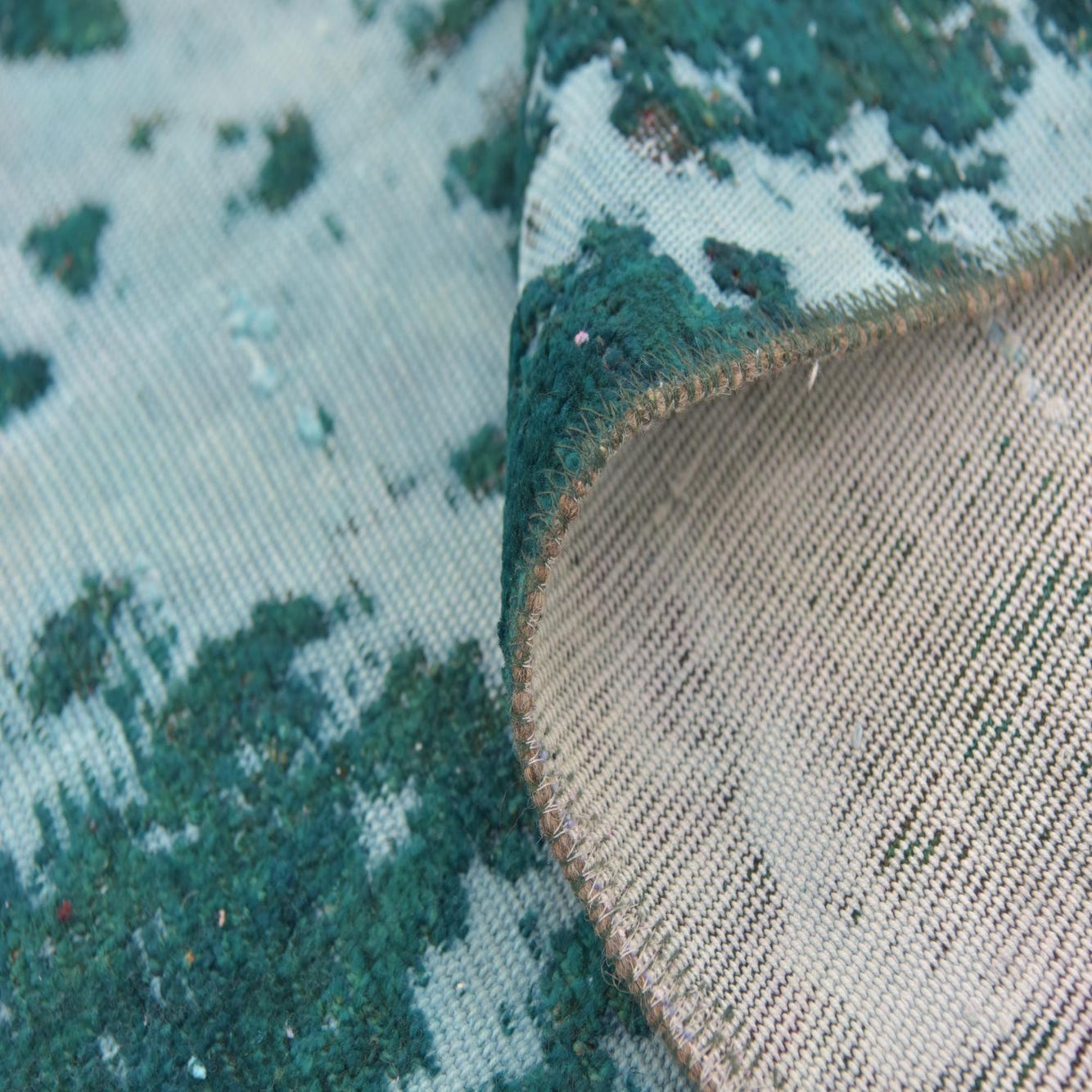The Ultra Vintage collection rug is a distinguished hand-knotted piece, crafted from 100% wool for enduring quality and a soft, tactile texture underfoot. Measuring 4x6, this rug presents a rich green background with light blue accents creating an abstract, distressed pattern that evokes the character of an antique. Its unique visual texture coupled with the depth of colors offers both a touch of sophistication and artistic flair to any space.