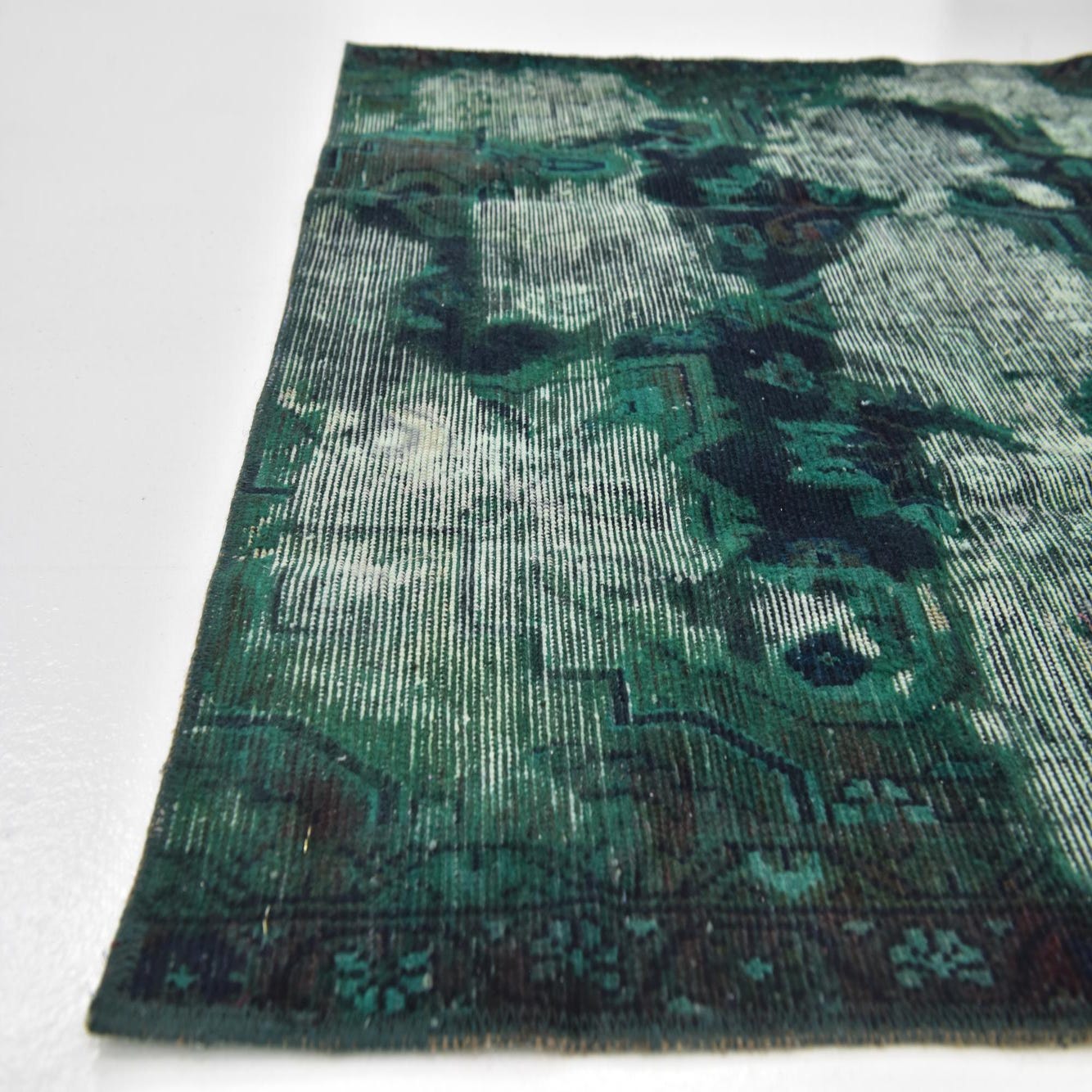 This Persian Ultra Vintage rug is an antique Persian Rug that has been washed, over-dyed, and then shaved down to a low pile. Look at the detail pictures to fully appreciate the uniqueness of this piece.