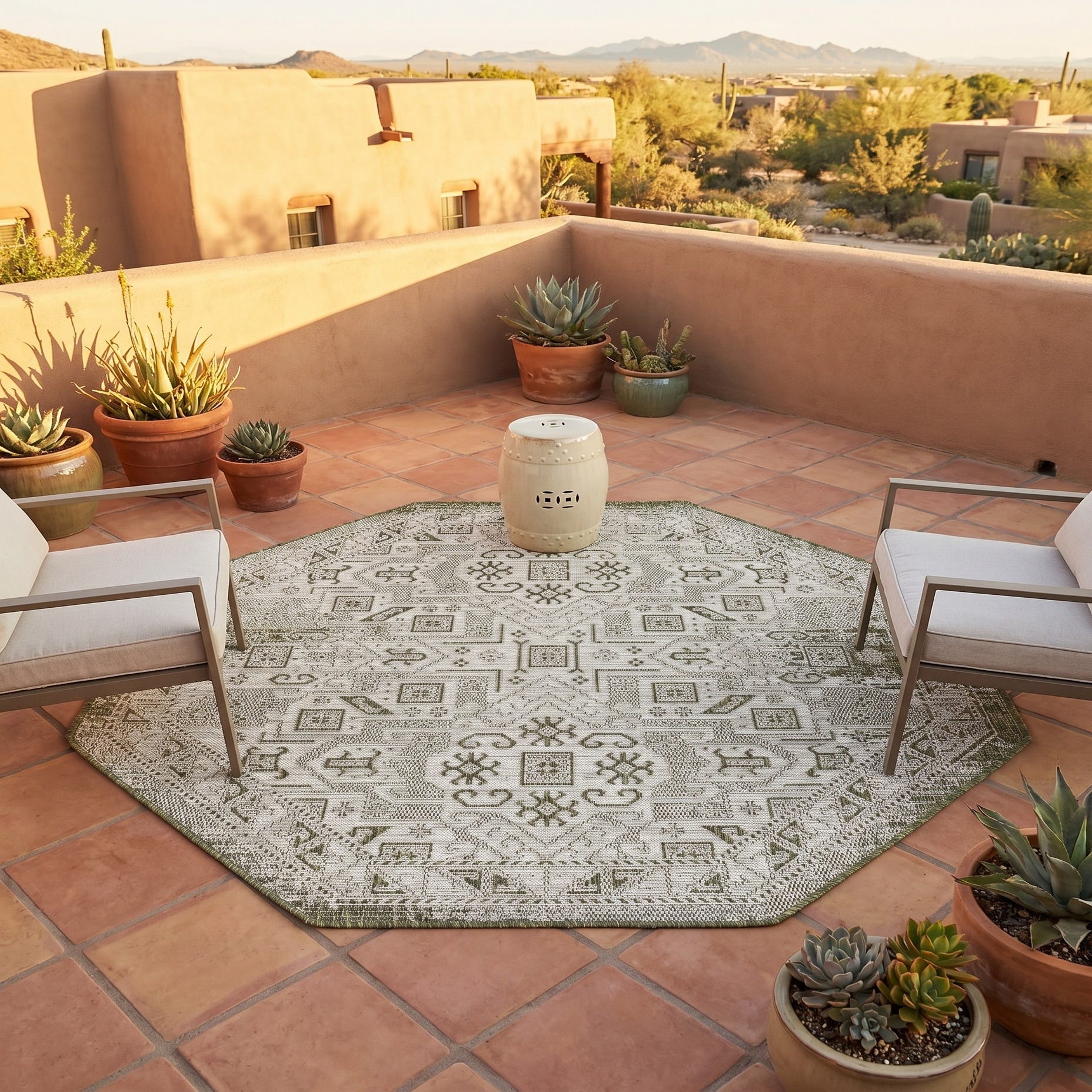 5' 3 x 5' 3 Easy-Clean Aztec Indoor / Outdoor Octagon Rug