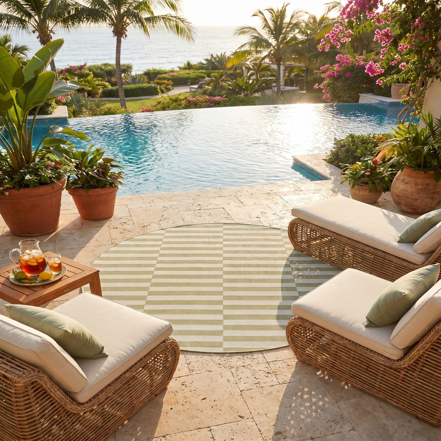 I bought these rugs to brighten up my patio they arrived within a few days and look amazing! Easy to clean and durable.