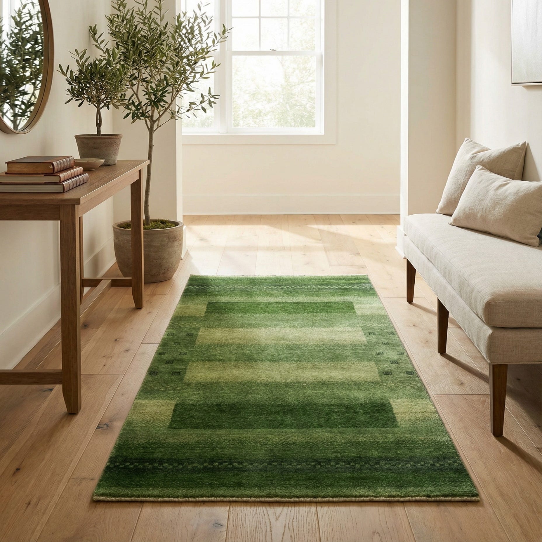Primary color is Green. Colors in this rug include: Green, Light Green.