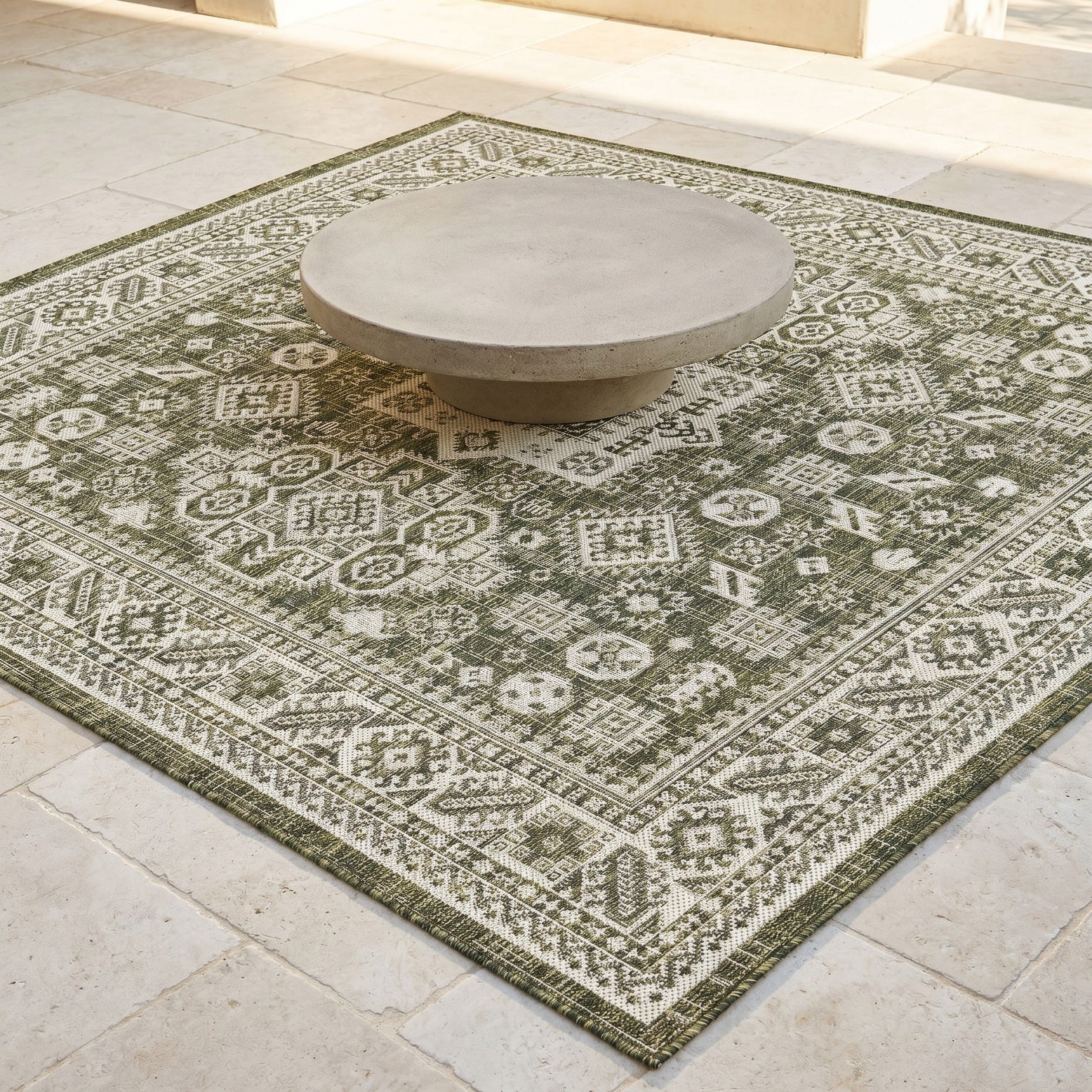 5' 3 x 5' 3 Easy-Clean Aztec Indoor / Outdoor Square Rug
