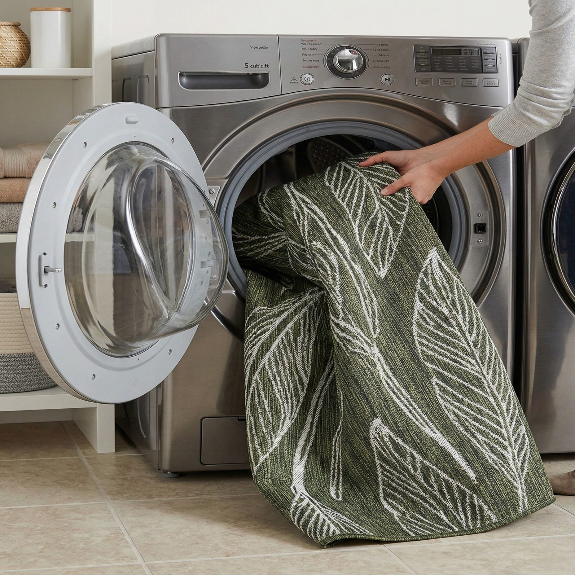 5' 3 x 7' Washable Botanical Indoor / Outdoor Rug