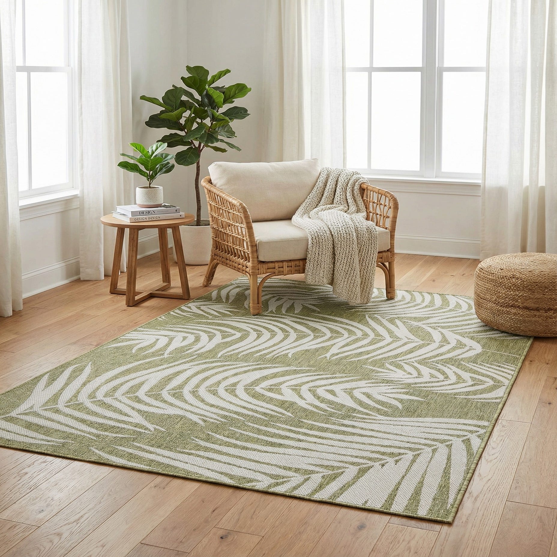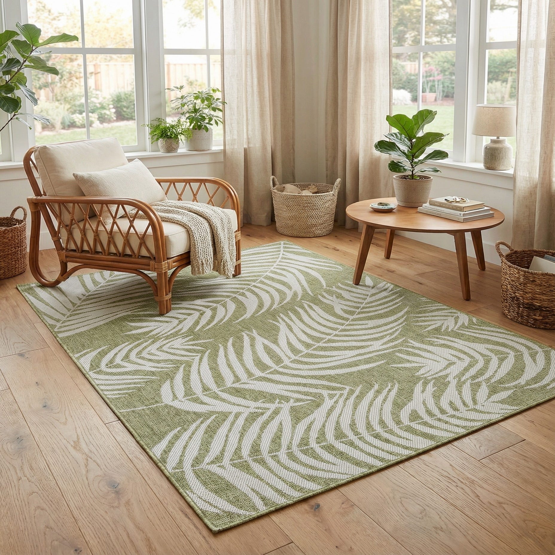 5' 3 x 7' Washable Botanical Indoor / Outdoor Rug