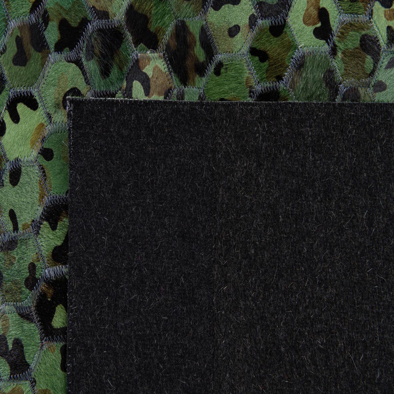 A 5x8 rectangular Cowhide Stocks rug by Rugs.com with a modern green camouflage pattern, ideal for a living room.
