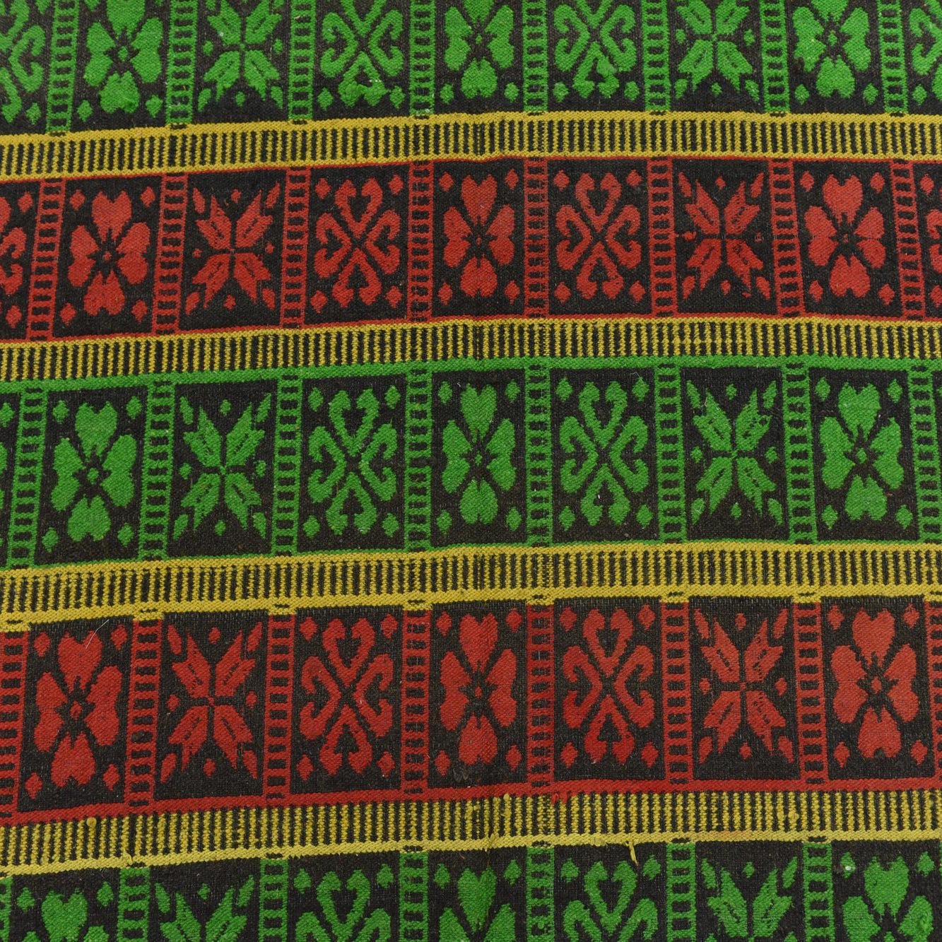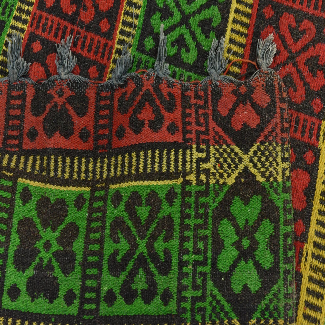 Primary color is Green. Colors in this rug include: Green, Red, Black, Yellow.