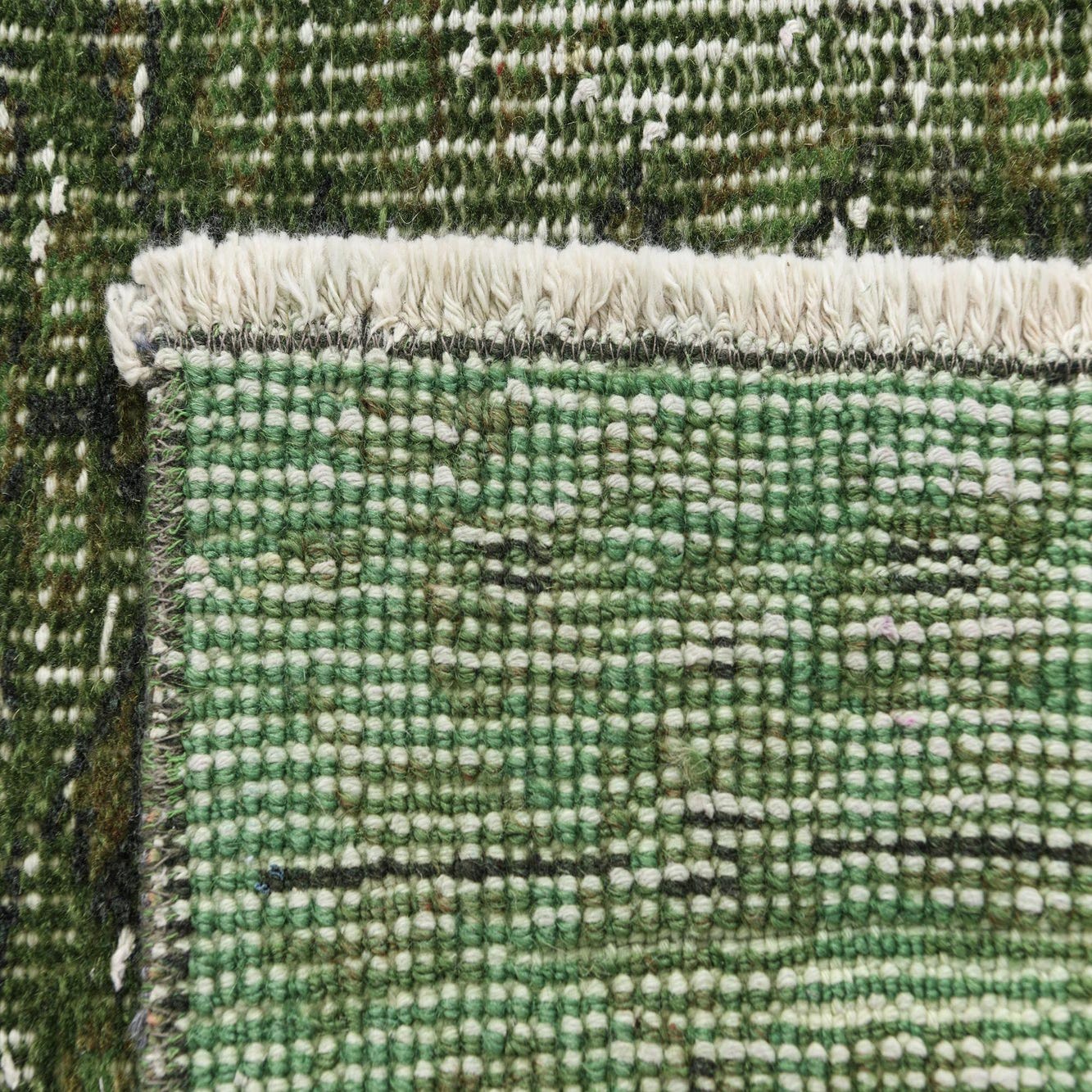 The Ultra Vintage collection presents a hand-made 5x8 rug crafted from 100% wool, ensuring a durable and tactile experience underfoot. The rug showcases a nuanced green background subtly interspersed with shades of beige, black, light green, and hunter green, creating a complex visual texture reminiscent of a vintage patina. Its pattern displays an abstract and organic feel with a sophisticated depth that repurposes traditional design through a modern lens.