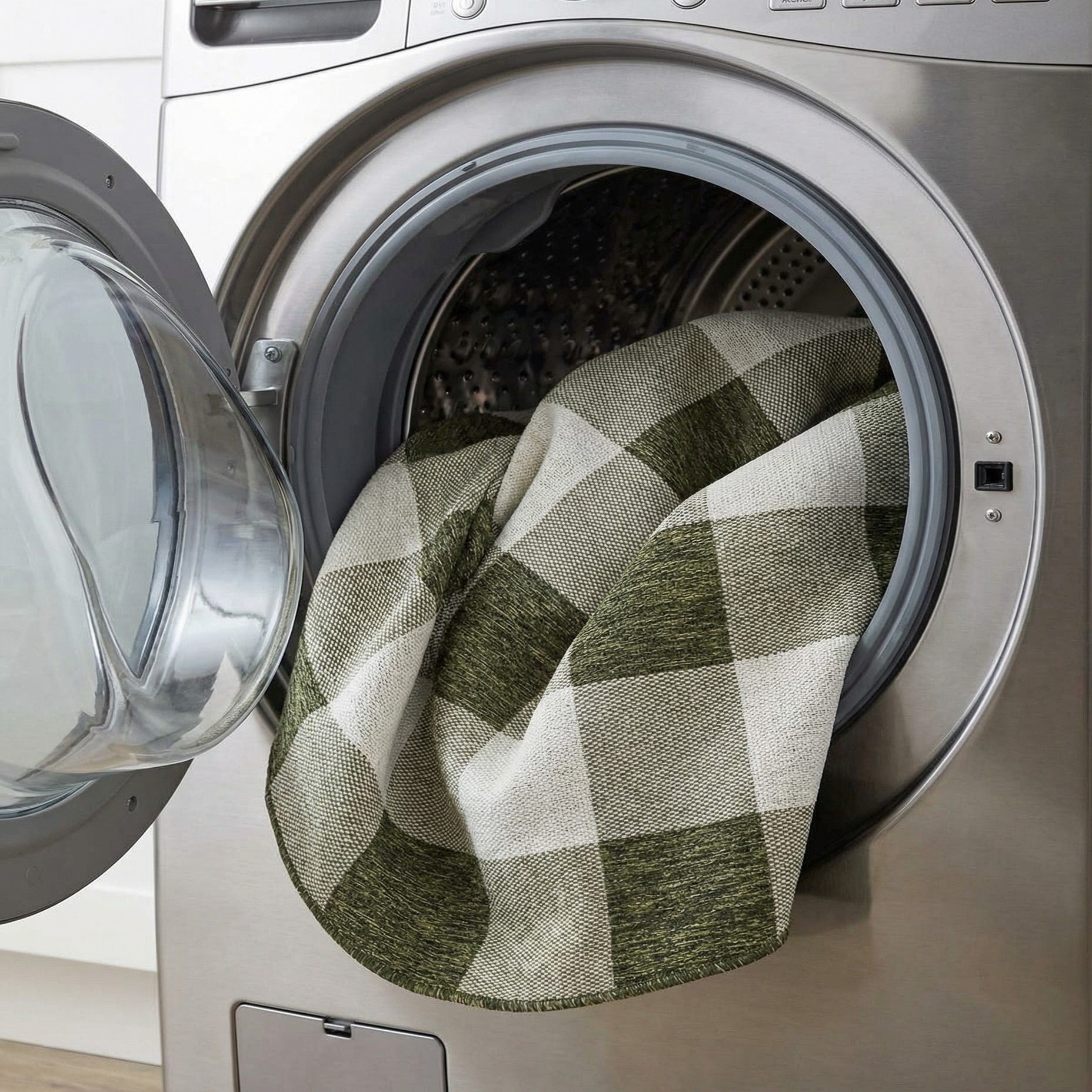 6' x 6' Washable Checkered Indoor / Outdoor Round Rug