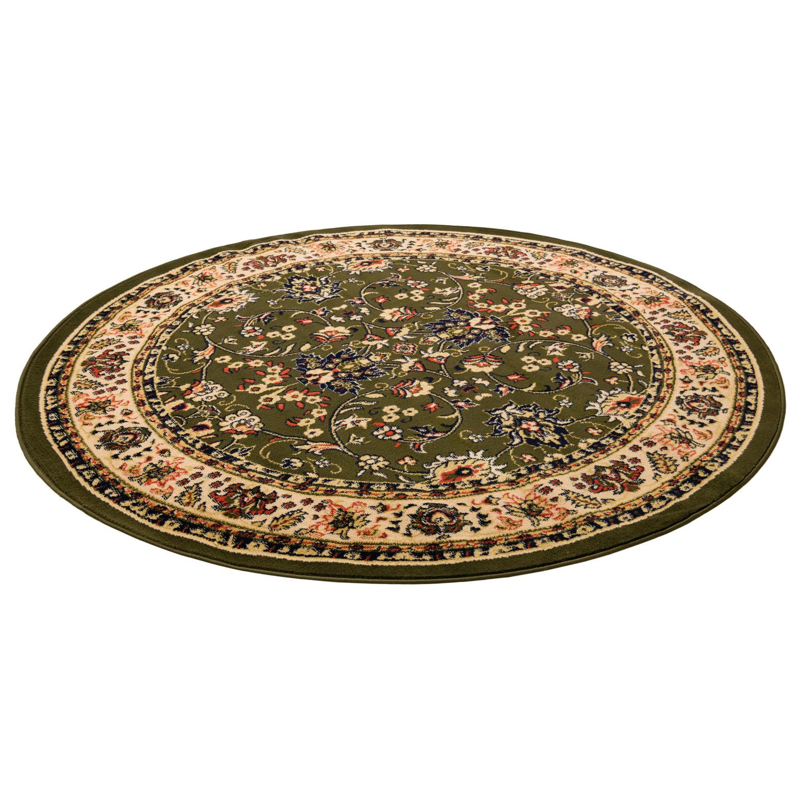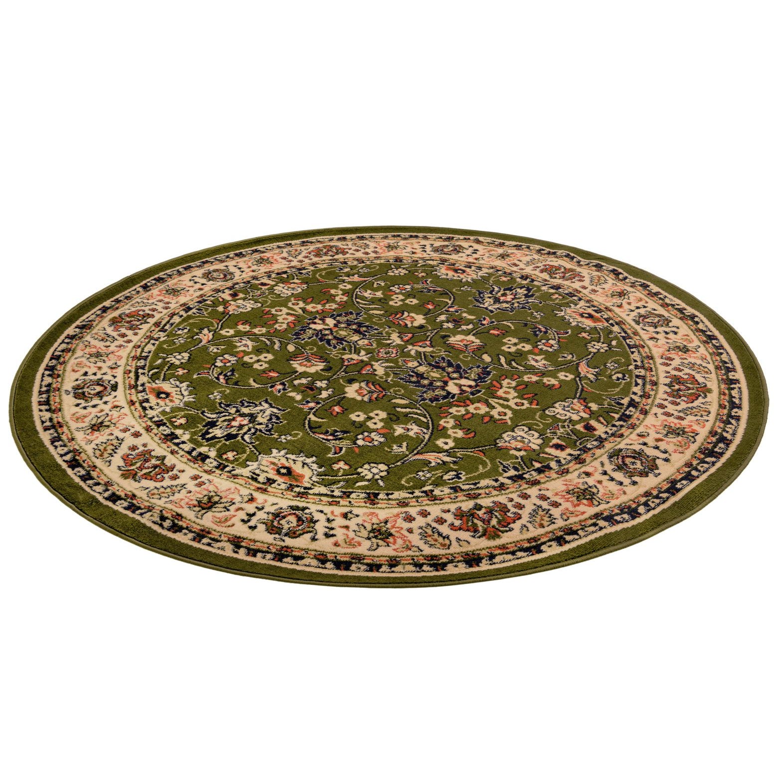 Primary color is Green. Colors in this rug include: Green, Cream, Terracotta, Navy Blue.
