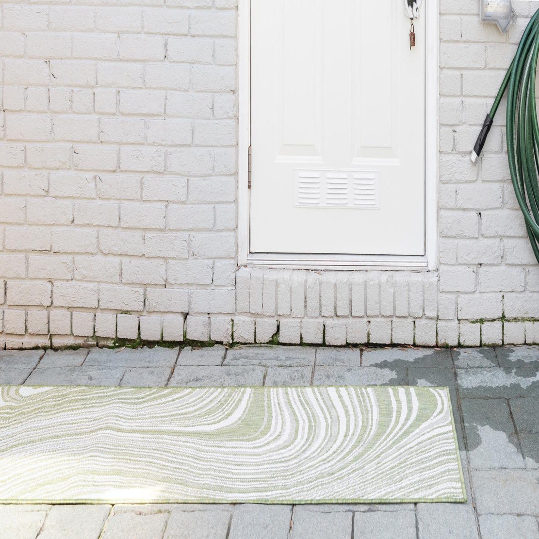 From the Outdoor Modern collection, this 6 Ft Runner is a tasteful addition crafted for longevity and designed to complement contemporary outdoor spaces. Embracing a modern aesthetic, the rug features a dynamic, abstract pattern with flowing lines that suggest movement, giving the rug a sense of fluidity and life. Likewise, the color palette includes a refreshing and verdant green background accented with ivory, offering a crisp and natural look that harmonizes with outdoor environments.