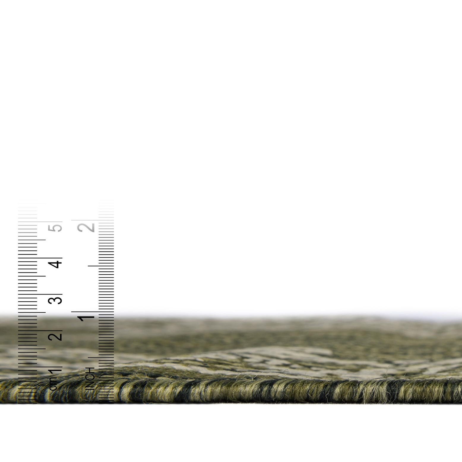 A 6 ft green runner rug with a traditional medallion pattern in light beige, suitable for indoor/outdoor use.