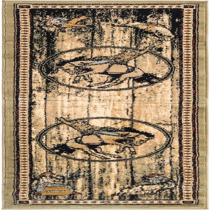 This runner works well in rustic, farmhouse, or traditional interiors where warm woods and leather finishes are present, and it can also anchor a transitional space that mixes vintage and contemporary pieces. Place it in a hallway or entry to guide circulation, alongside a kitchen island for added texture, or layered in front of a console or bench to bring color and pattern into a narrow space. The green background pairs naturally with neutral linens and blue accents, while the black and brown details help ground darker furniture.
