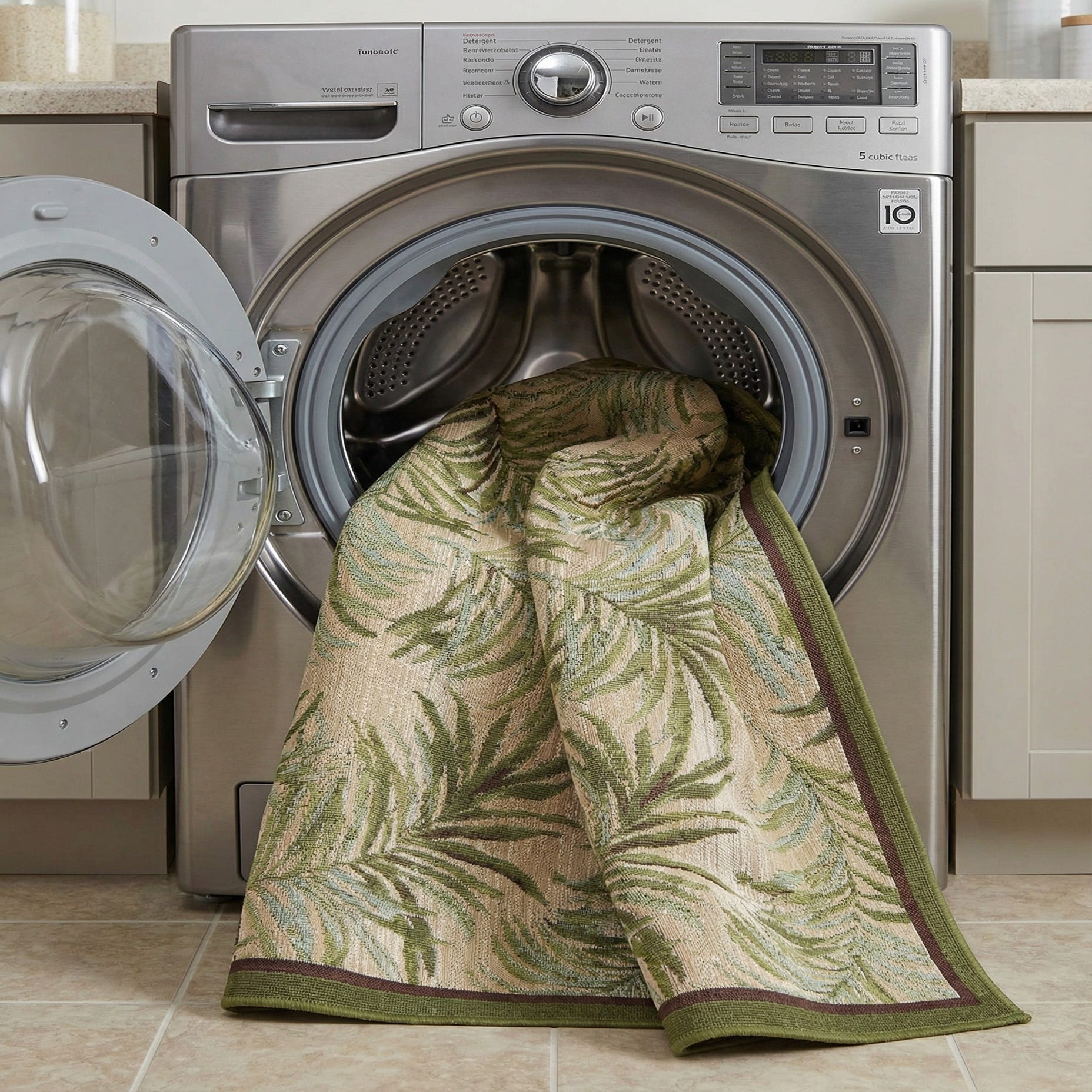 This series of hues and the organic motif align the rug with nature-inspired aesthetics, offering a tranquil yet lively feel to any area it graces. Its stain-resistant qualities and pet-friendly designation ensure it can withstand the rigors of high-traffic spaces and active family life without losing its visual appeal. Additionally, the shed-free nature of the rug confirms its ease of maintenance and enduring beauty.