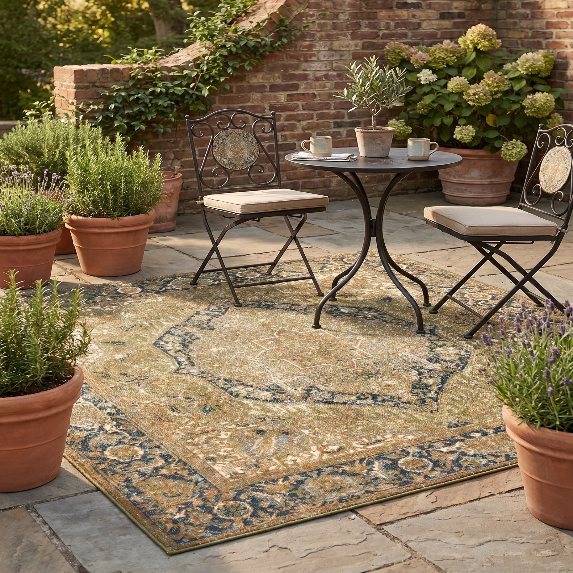 6' x 6' Easy-Clean Traditional Indoor / Outdoor Square Rug