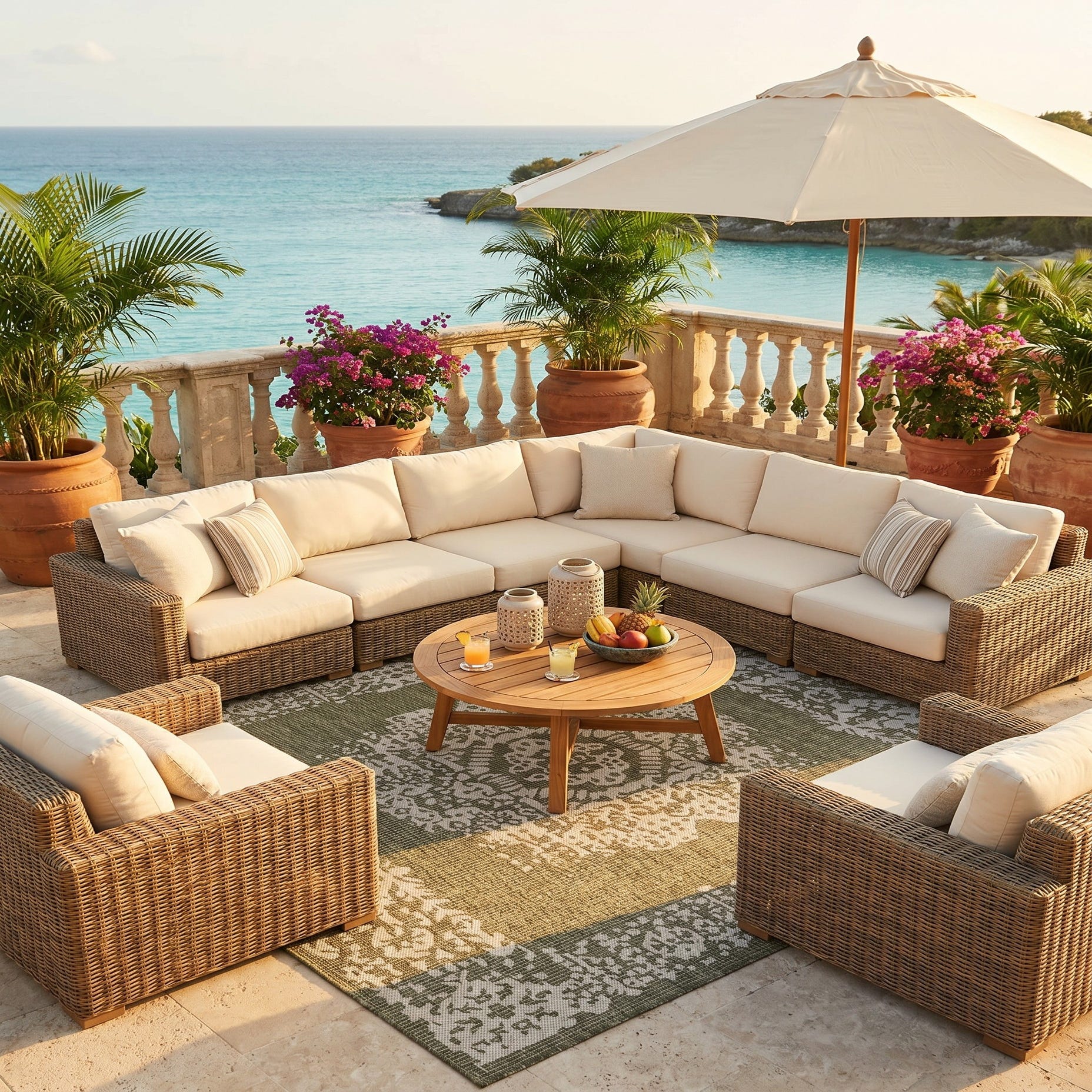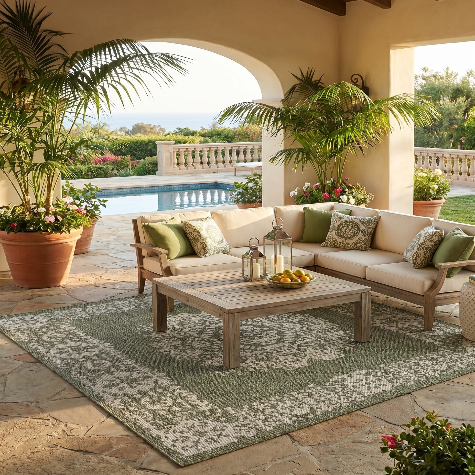 6' x 6' Easy-Clean Traditional Indoor / Outdoor Square Rug