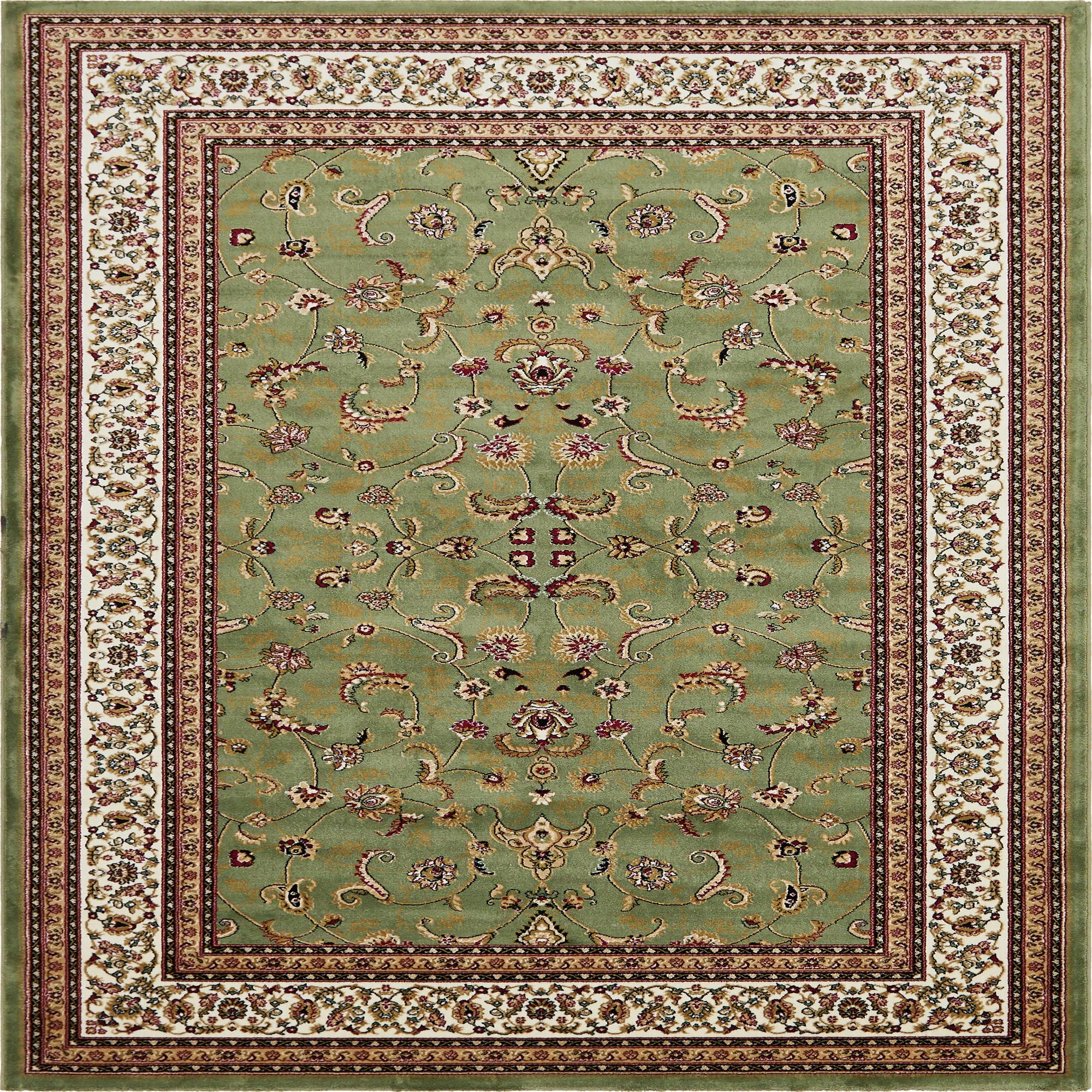 Primary color is Green. Colors in this rug include: Green, Black, Ivory, Red, Tan.