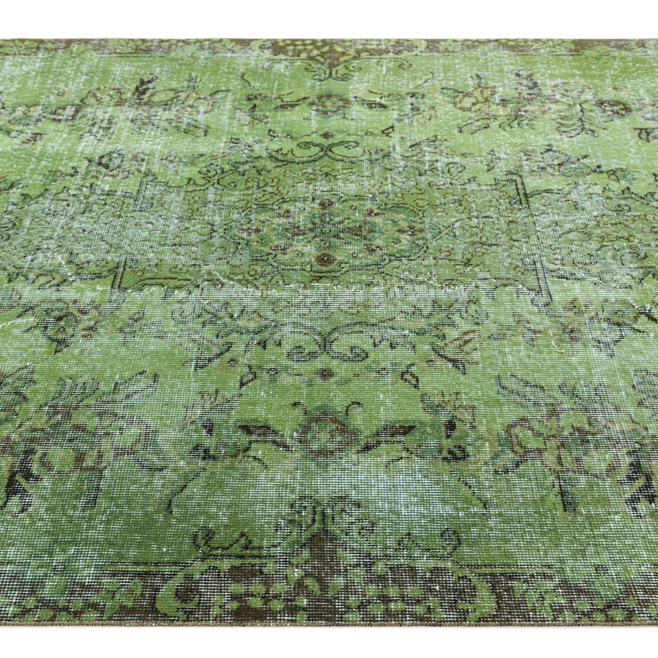 A 6x9 rectangular Ultra Vintage rug in varying shades of green with a distressed Persian pattern, suitable for a living room.