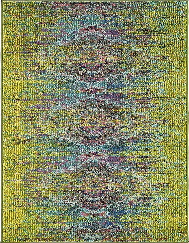 Primary color is Green. Colors in this rug include: Green, Blue, Navy Blue, Pink, Brown, Yellow.