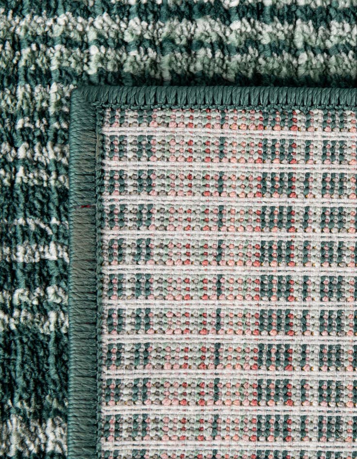 A 7' 3 x 7' 3 square green area rug with a modern striped pattern in varying shades of green, ideal for indoor living spaces.