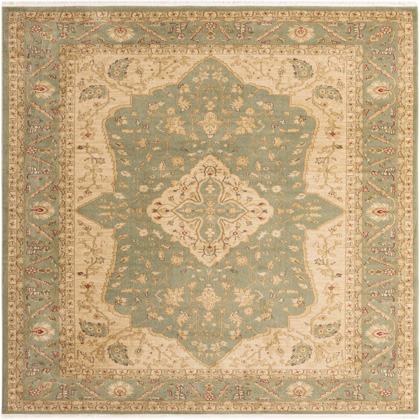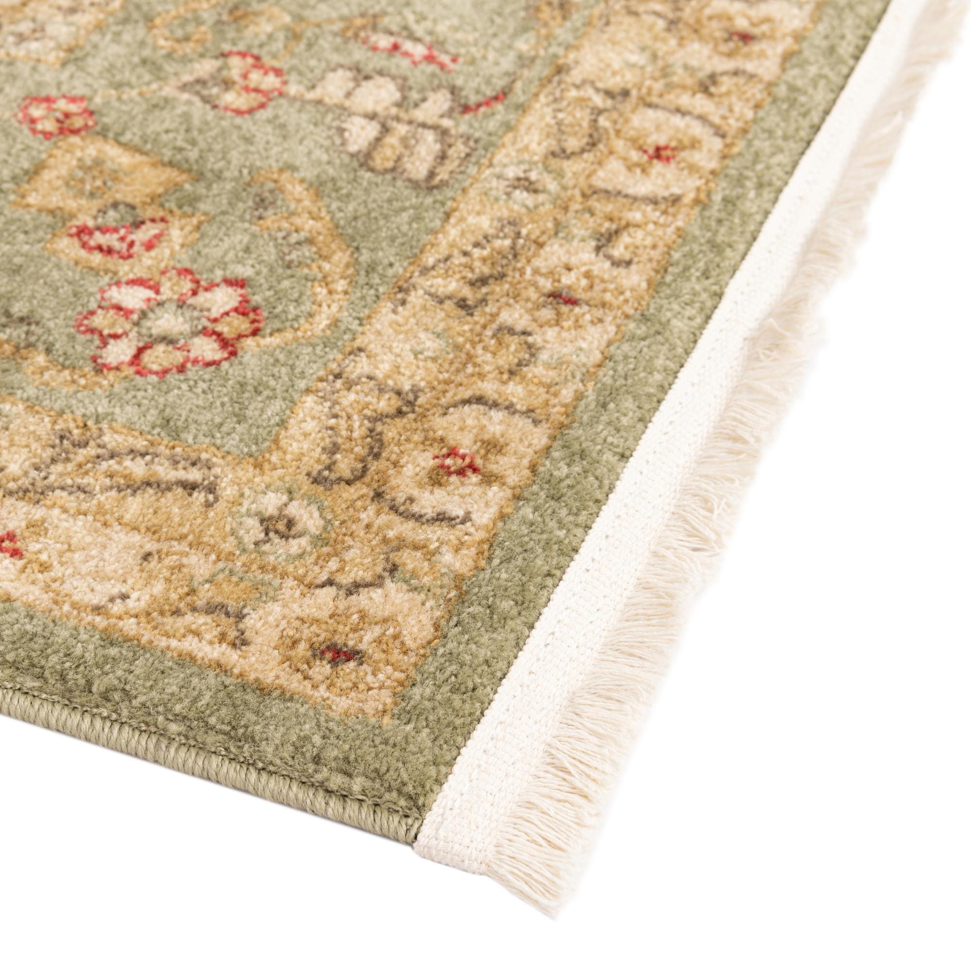 Primary color is Green. Colors in this rug include: Green, Beige, Red, Light Brown.