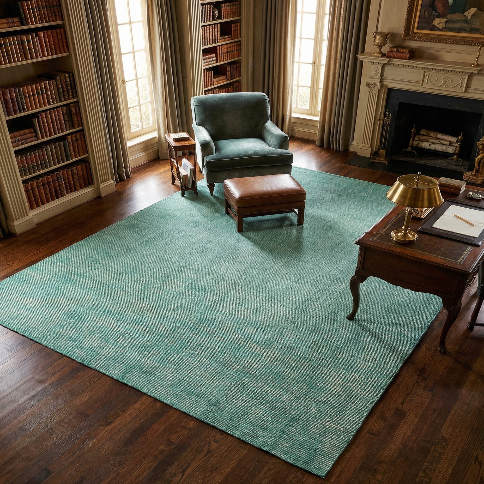 This rug suits a range of interiors — place it beneath a seating group to ground a living room, layer it at the foot of a bed for added warmth in a bedroom, or use it under a dining table for a relaxed, cohesive look. It pairs especially well with light woods, crisp ivory or linen upholstery, and brass or matte black accents, fitting coastal, modern-traditional, and casual contemporary schemes where a soft wash of color and tactile texture are desired.