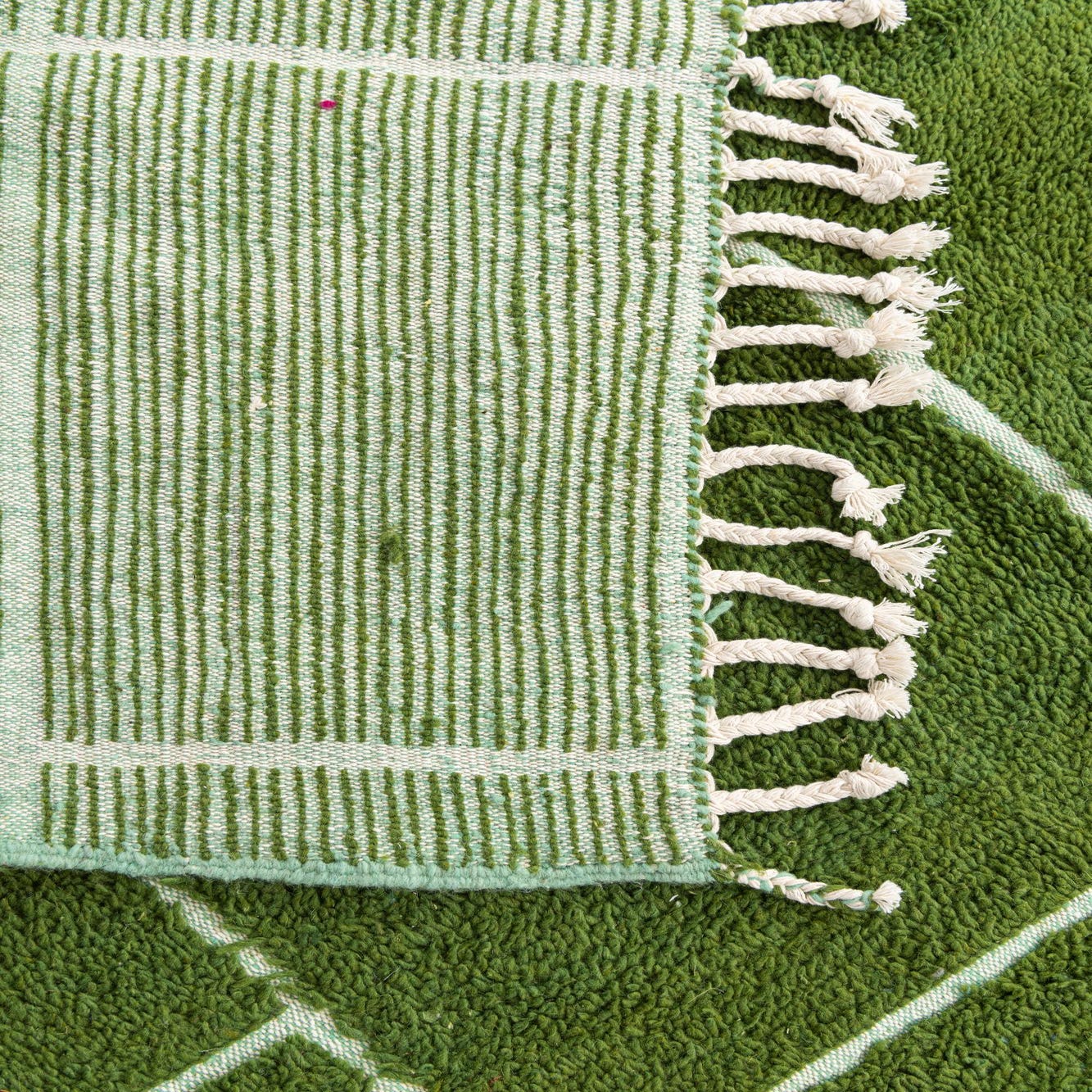 Primary color is Green. Colors in this rug include: Green, Ivory.