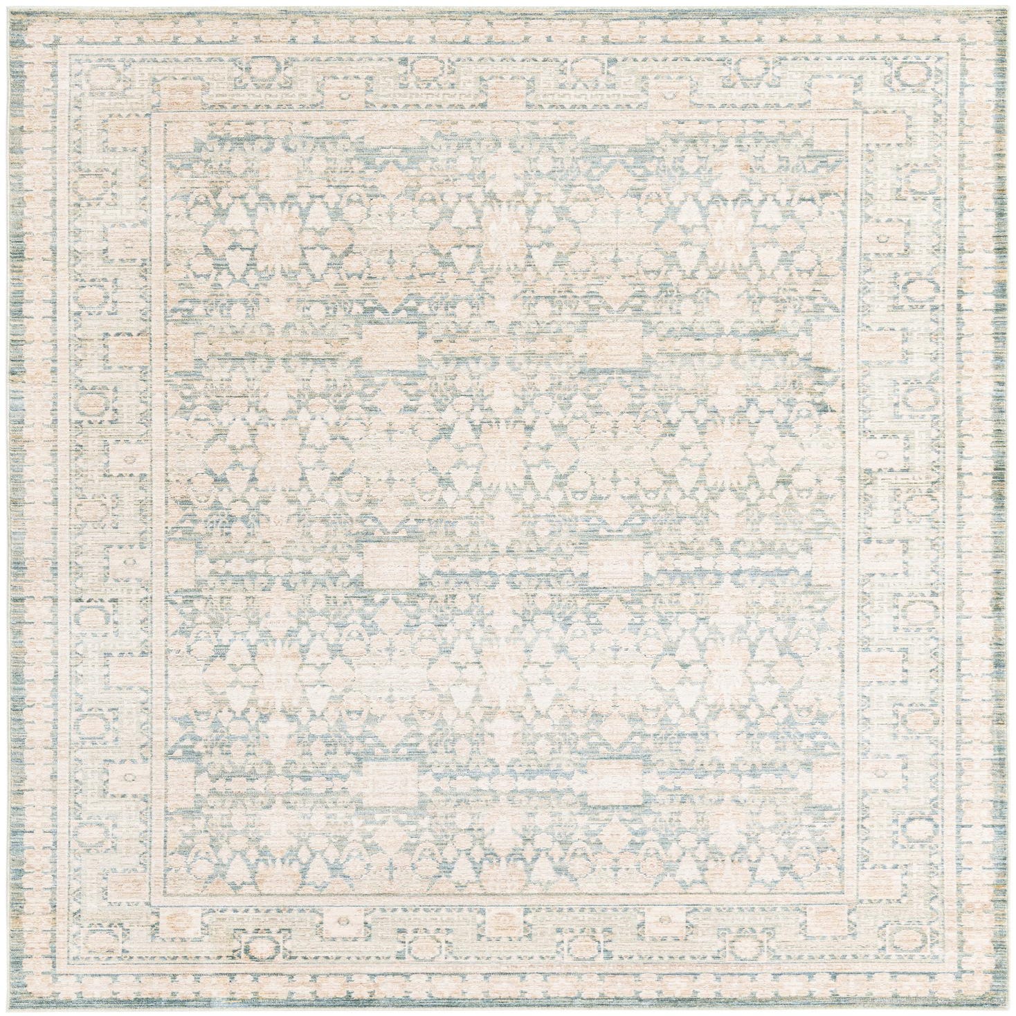 Primary color is Green. Colors in this rug include: Green, Beige, Ivory.