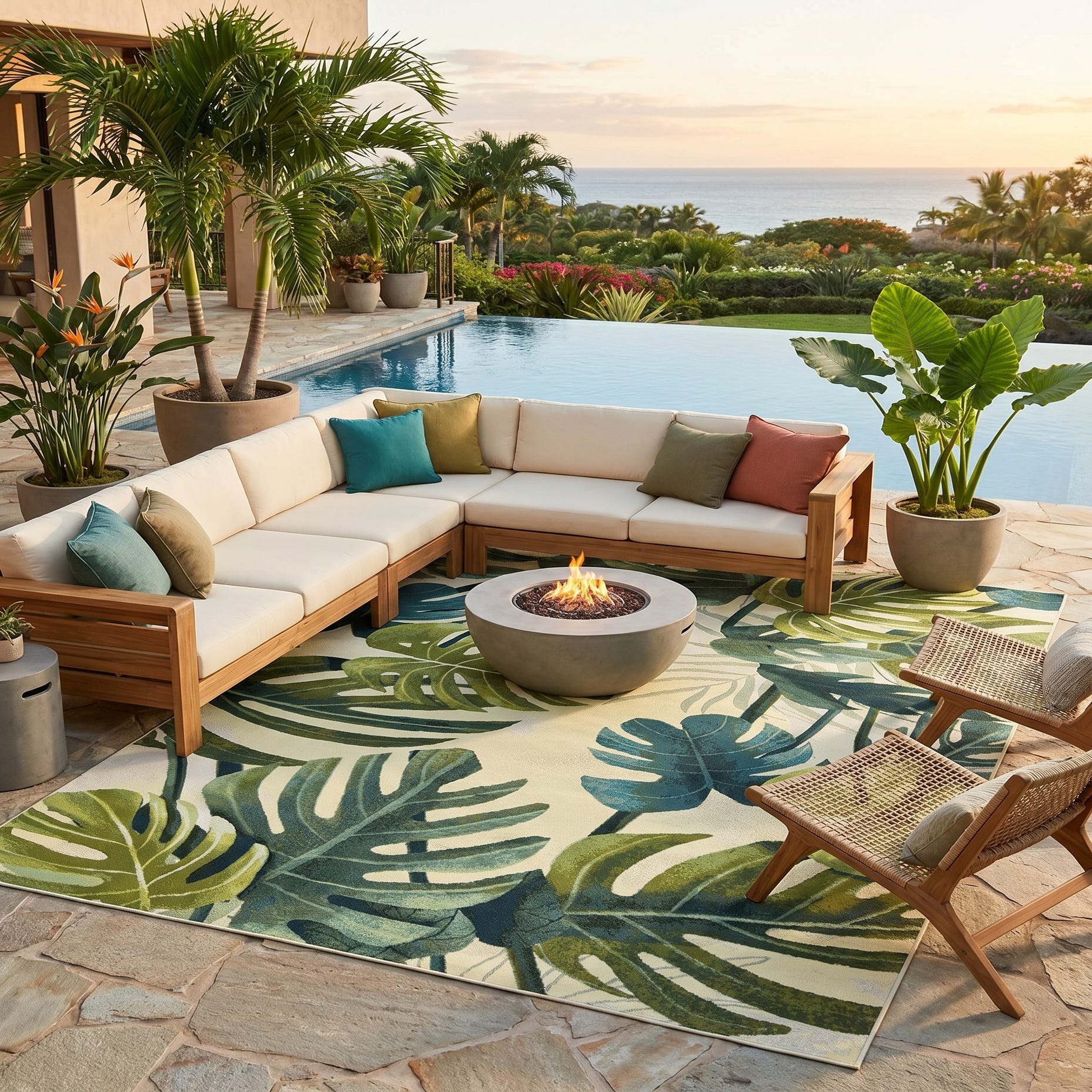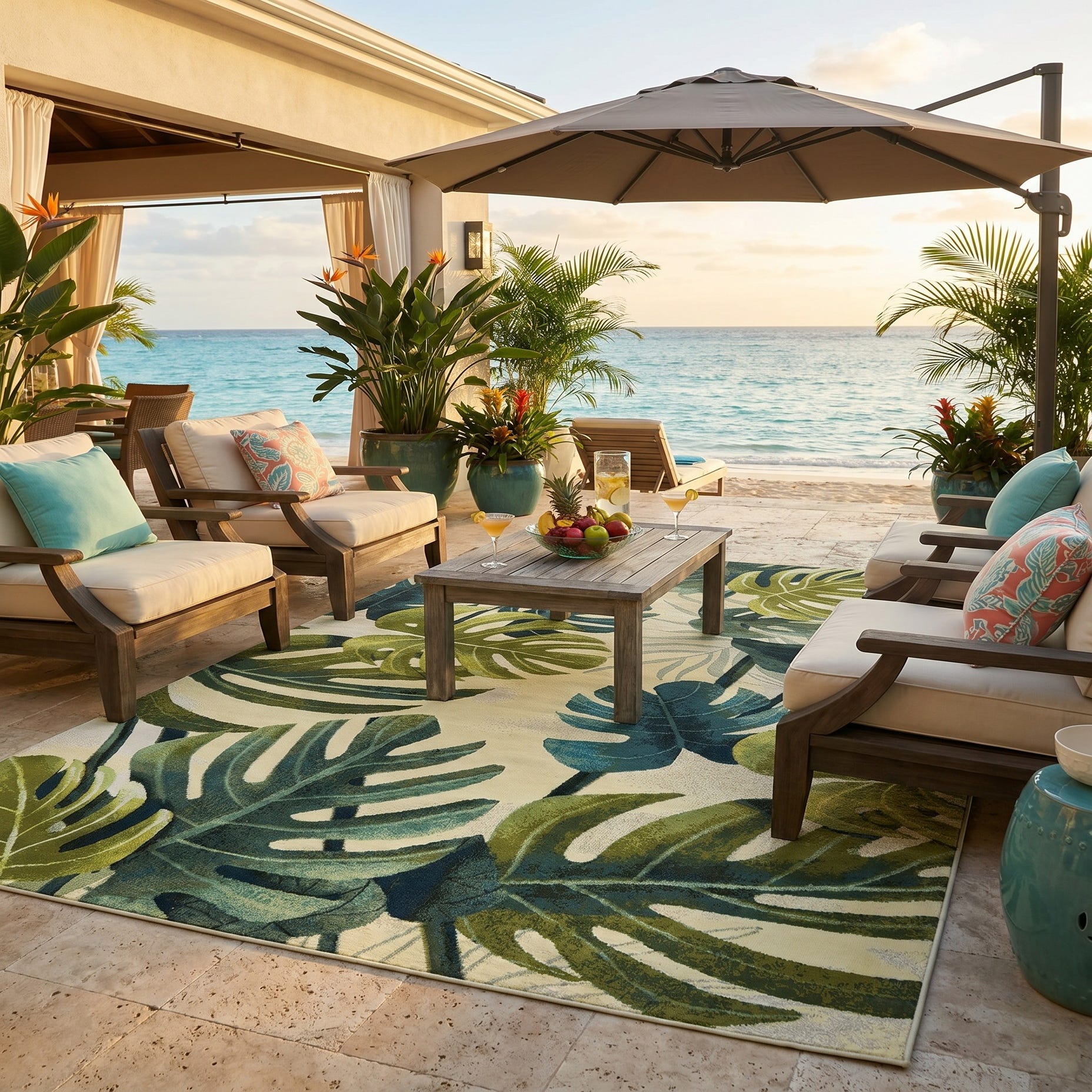 7' x 10' Easy-Clean Botanical Indoor / Outdoor Rug
