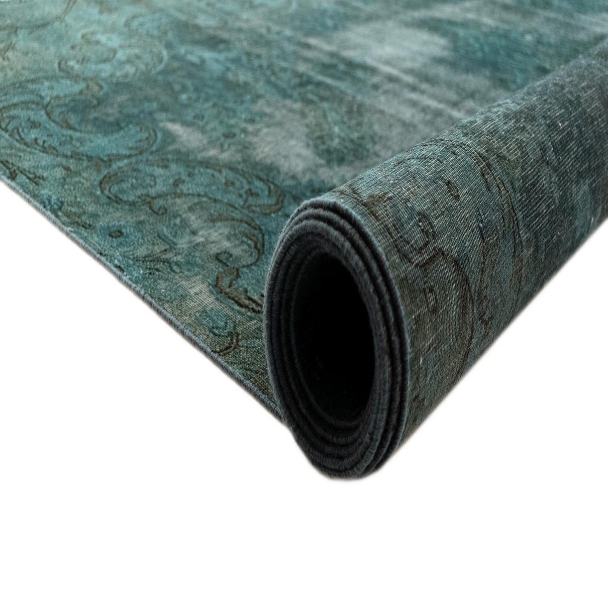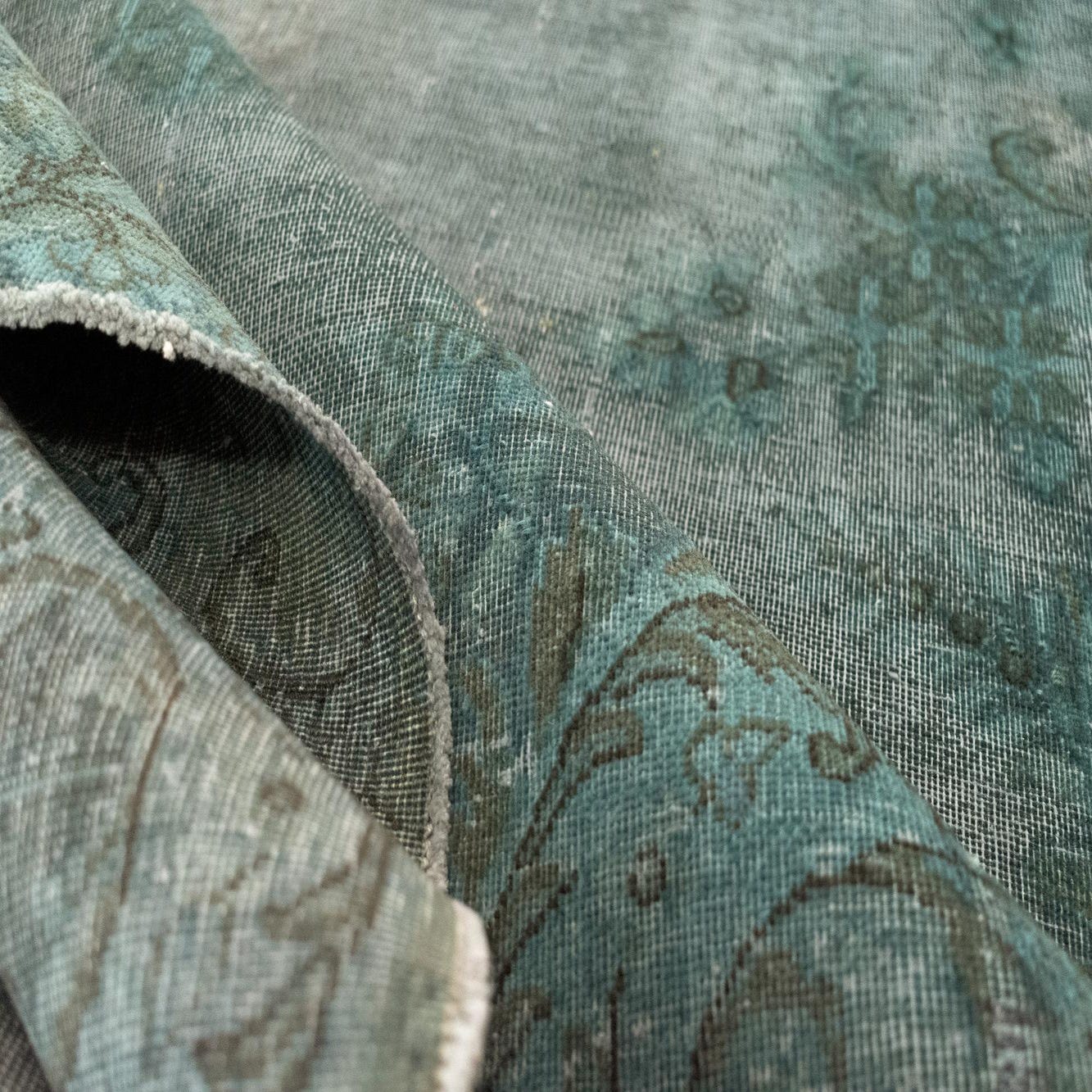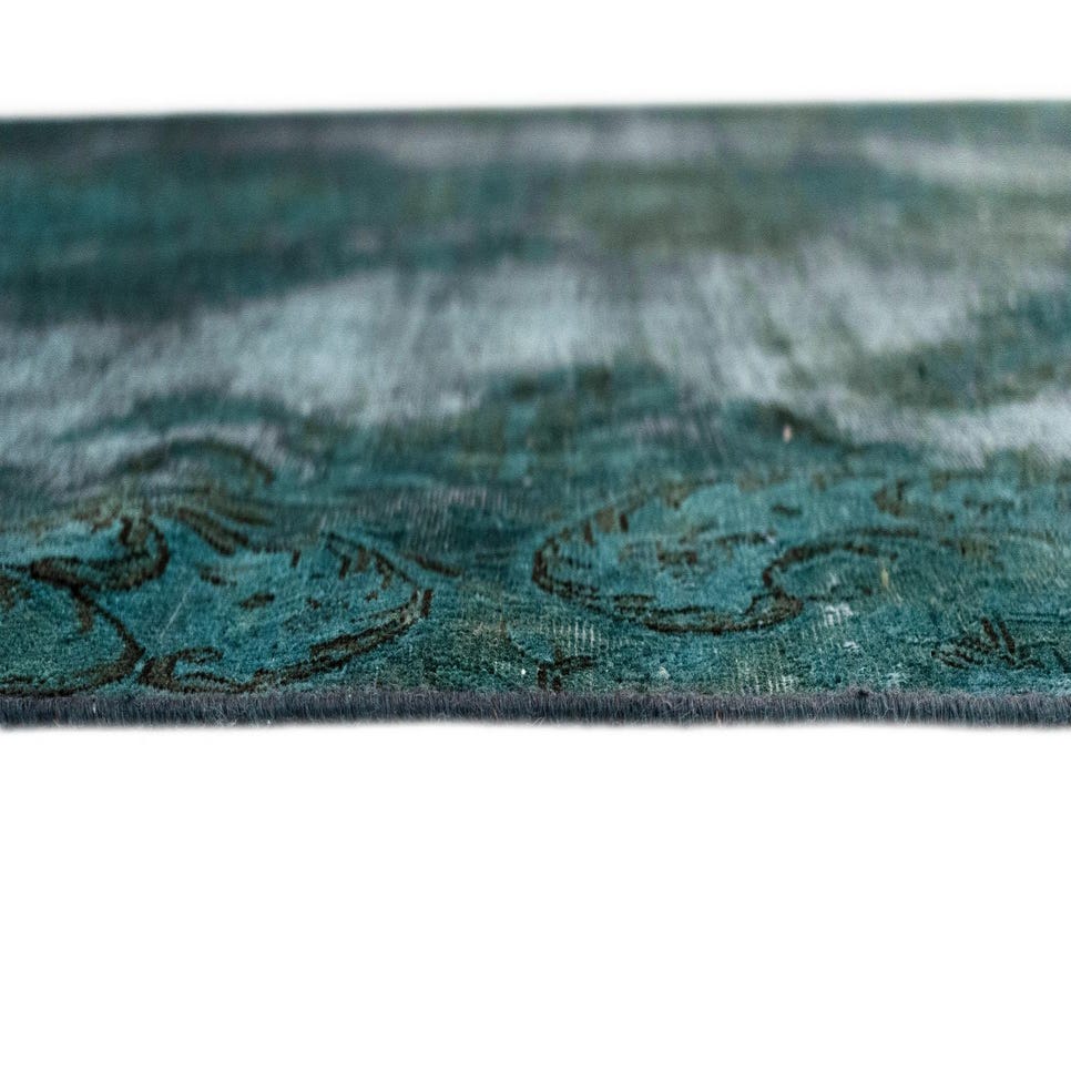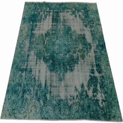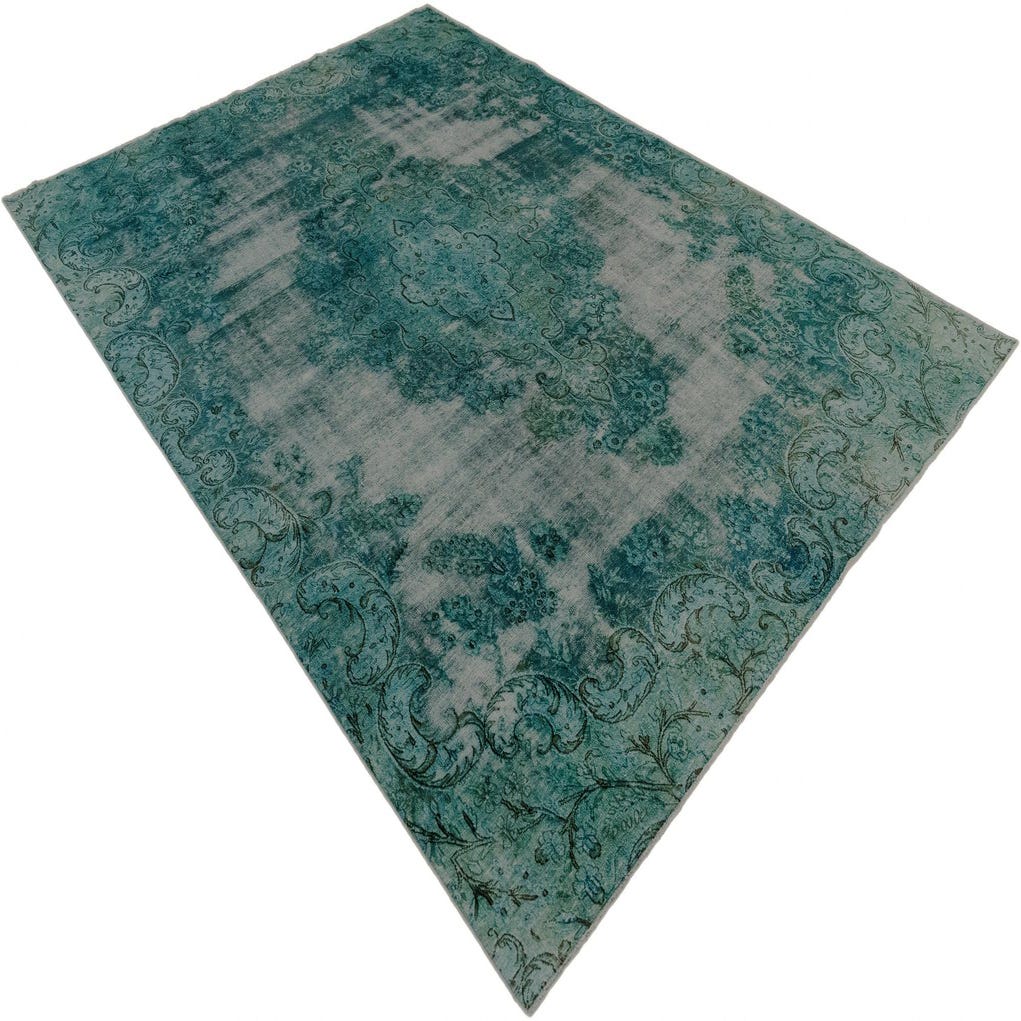A 7x10 rectangular green Persian area rug with a distressed traditional pattern, ideal for a living room.