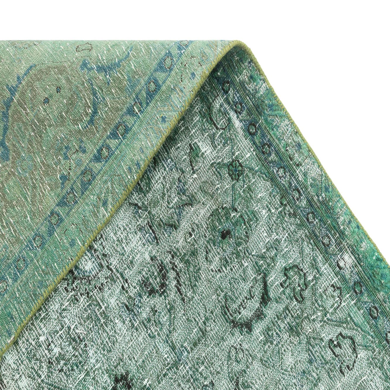 A 7x10 rectangular Rugs.com Vintage Royal rug in shades of green with a distressed vintage floral pattern.