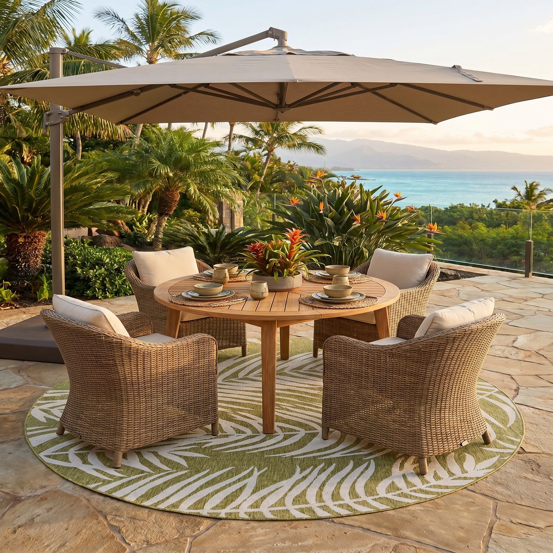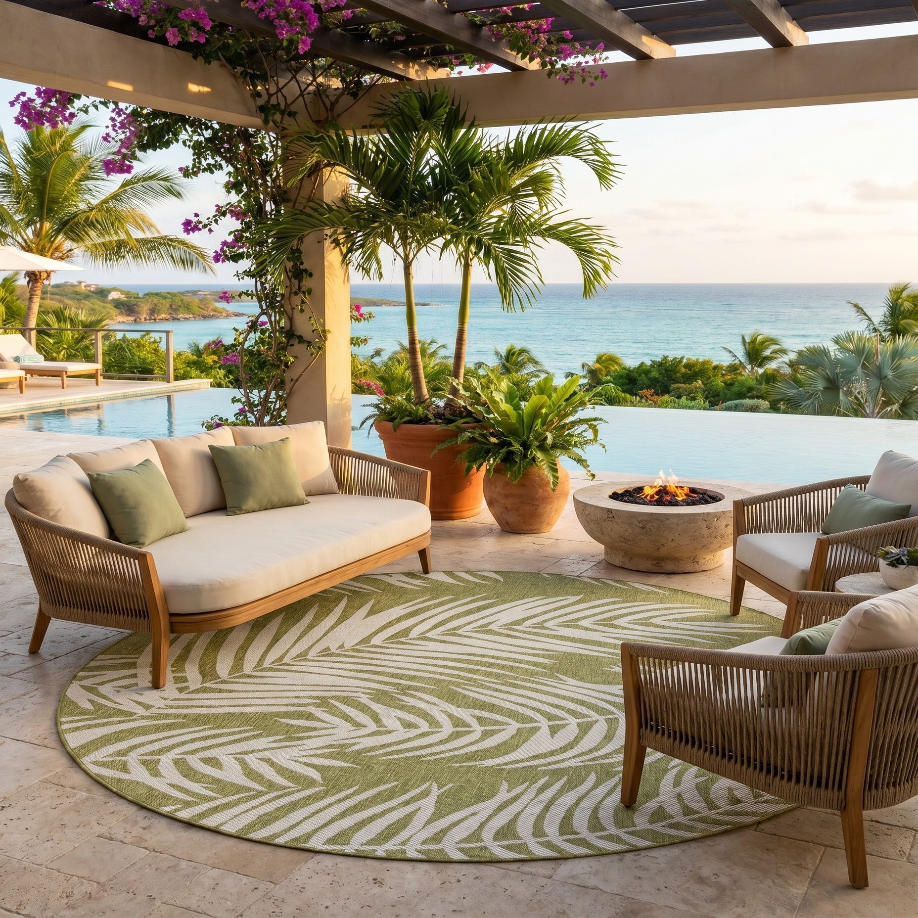 7' 10 x 7' 10 Easy-Clean Botanical Indoor / Outdoor Round Rug