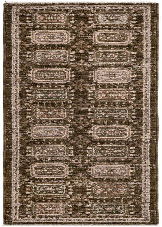 Primary color is Green. Colors in this rug include: Green, Beige, Brown, Gray, Ivory.