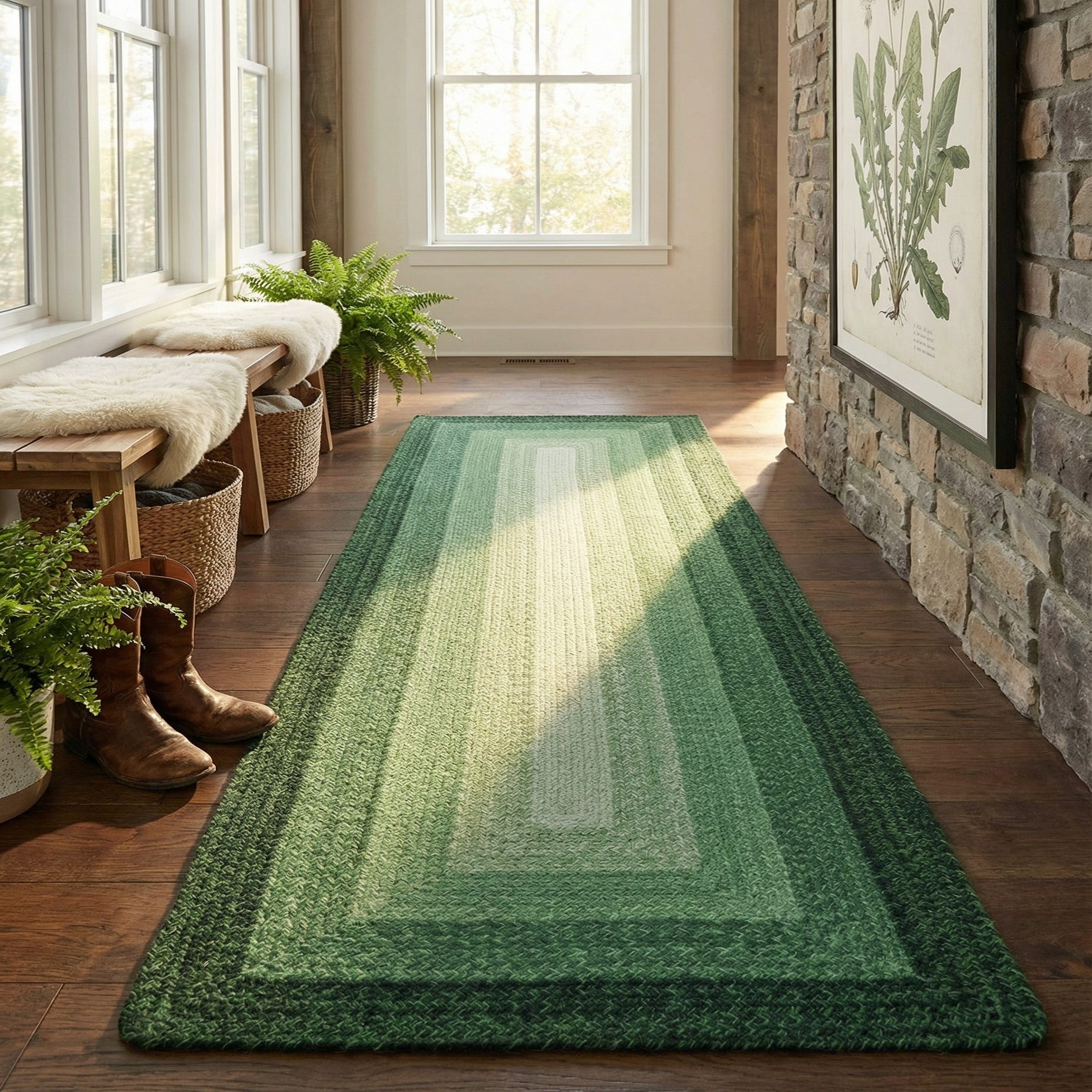 2' 7 x 8' Handmade Hand Braided Wool Runner Rug